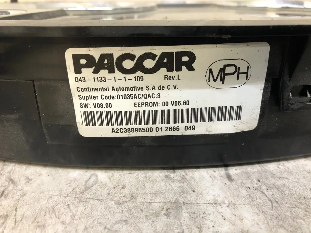 USED: USED VOLTS, OIL PSI, WATER TEMP, TACHOMETER, FUEL GAUGE, LCD SCREEN, SPEEDOMETER, BRAKE APP PSI, PRIMARY/SECONDAY APP, DEF GAUGE ID: Q43-1133-1-1-109