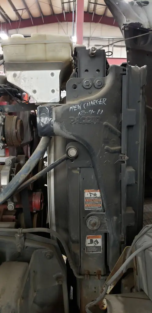 Complete Paccar cooling pack off of a 2011 Kenworth T800 with a Cummins ISX engine. Has maintenance notes written in paint pen. Includes condenser, radiator, reservoirs, etc.