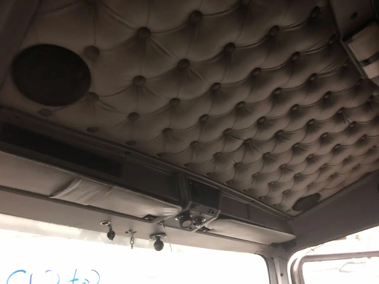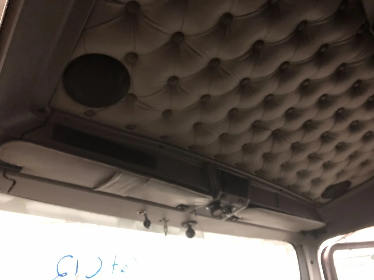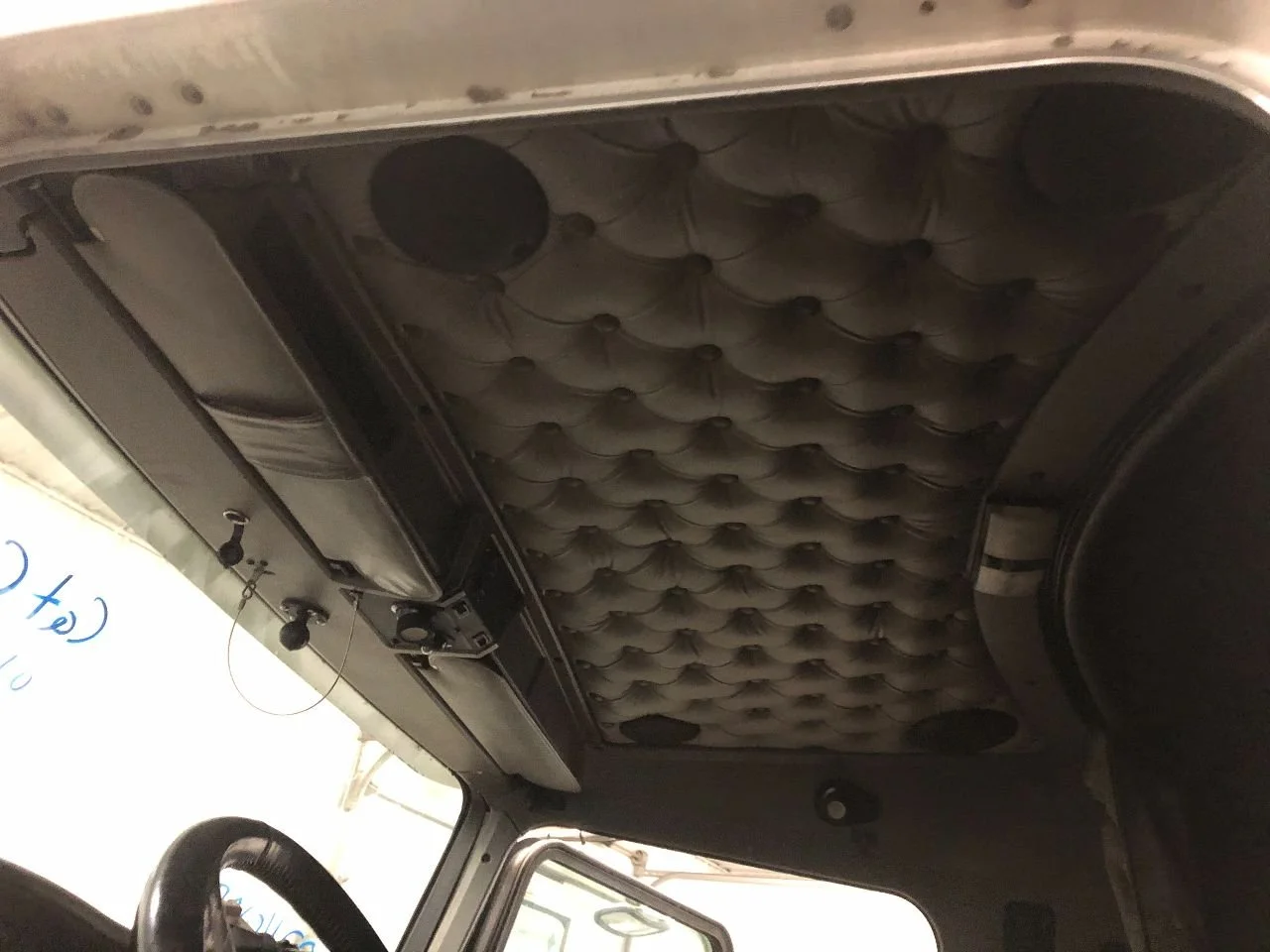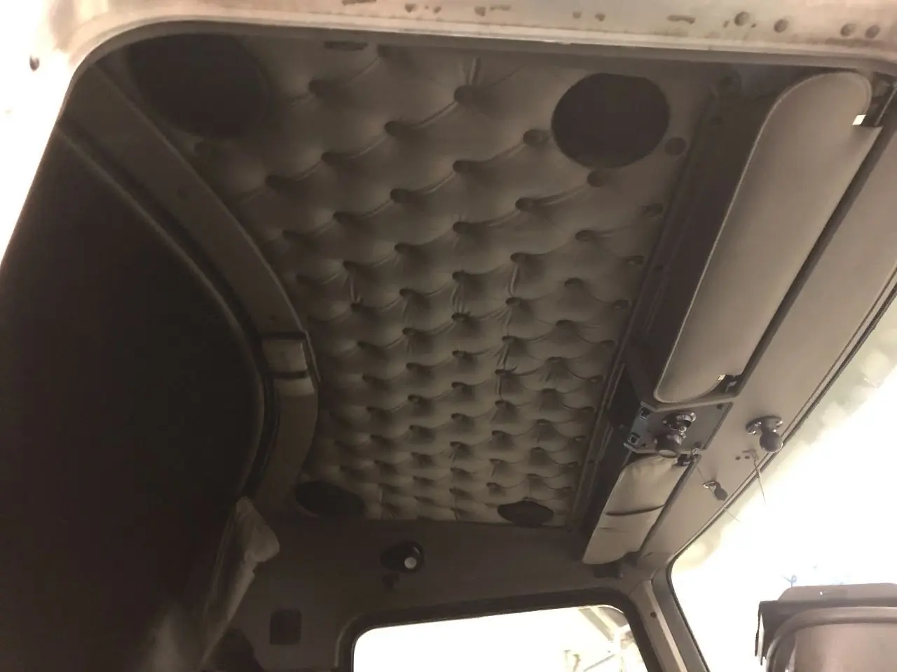 USED: USED HEADLINER ASSEMBLY W/ OVERHEAD CONSOLE, FROM WINDSHIELD & OVER DOORS TO SLEEPER SEAM W/ SUN VISORS, DOES NOT INCLUDE METAL SUPPORT STRUCTURE