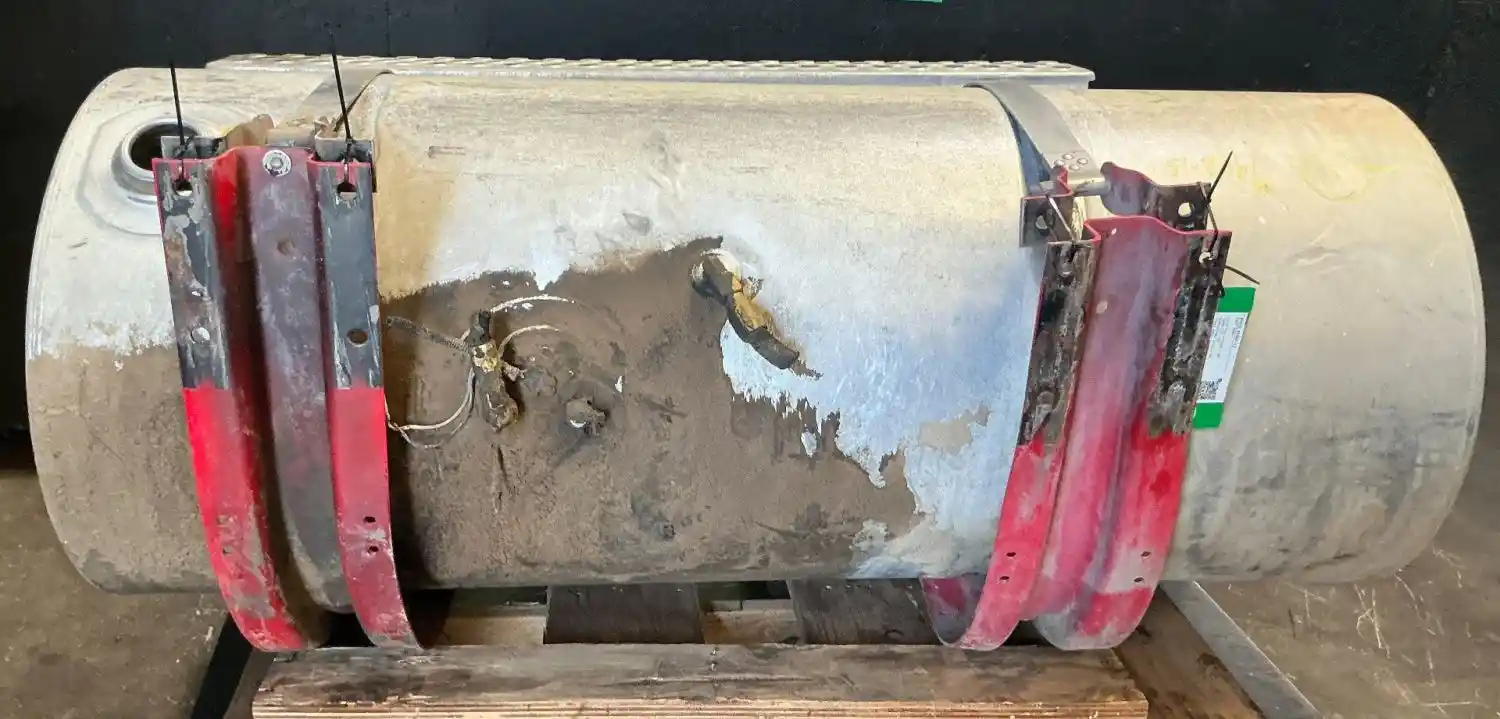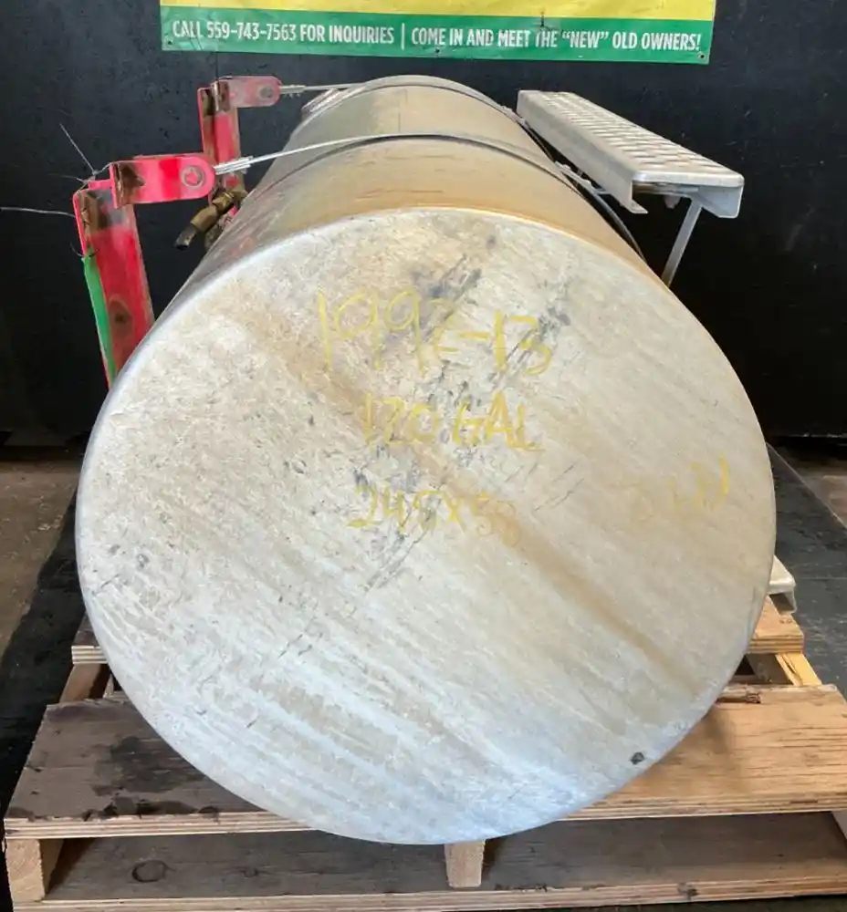 USED: USED 2003 Kenworth T800 Passenger Side Fuel Tank, 58"L x 24.5"Dia, 120 Gallon Capacity, Front Fill, w/ Steps & Brackets, Missing Cap, Has Small Dent On Top. P/N K424-0988N1372T121.
