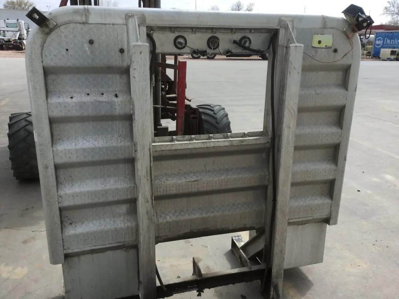 USED: USED 68" X 69" ALUMINUM HEADACHE RACK W/ LIGHTS