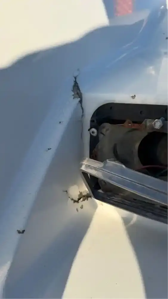 GOOD USED HOOD ASSY, HAS CRACK BY LH HEADLIGHT AND A FEW CHIPS ON LH FENDER. CURVED WINDSHEILD