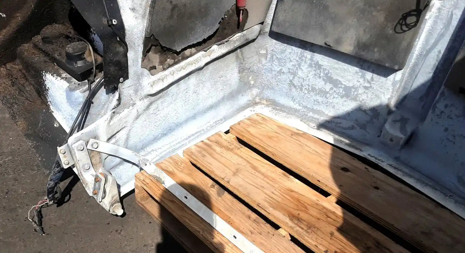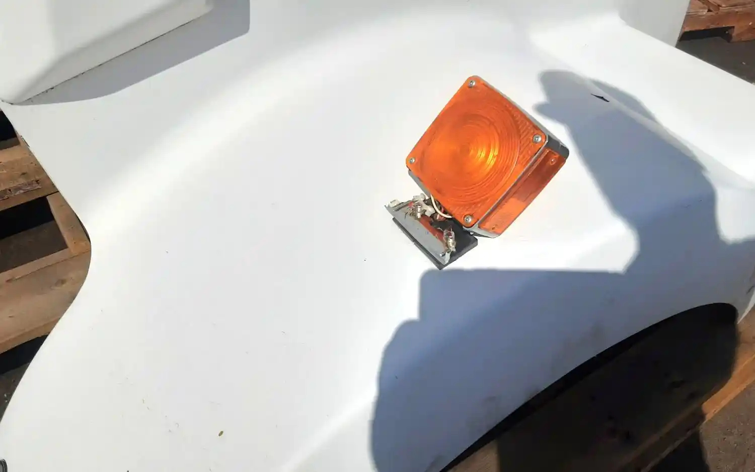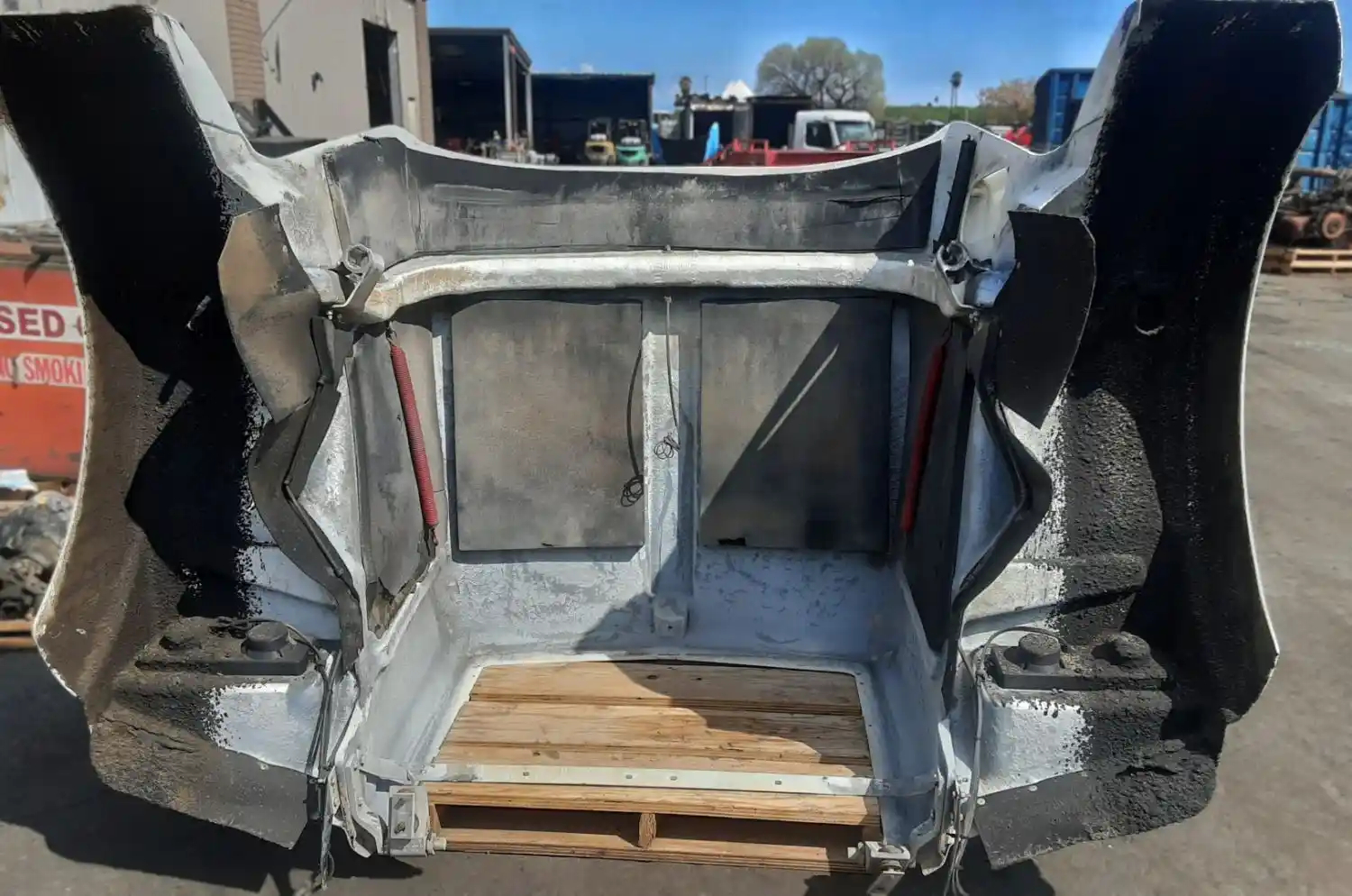 Used: Used 2007 Kenworth T800 Hood, 53"L, Missing Grille, RH Headlight Bezel, LH Blinker Light, RH Blinker Damaged, Small Chips In Paint, Visible Stress Cracks On Fenders
