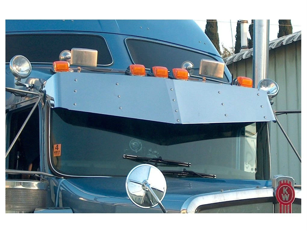 NEW: NEW 1967-2024, KENWORTH, W900/T800/T600/T660 HIGH-MID, 13"X15" V-STYLE VISOR (CURVED WINDSHIELD), STAINLESS STEEL 18 GA.