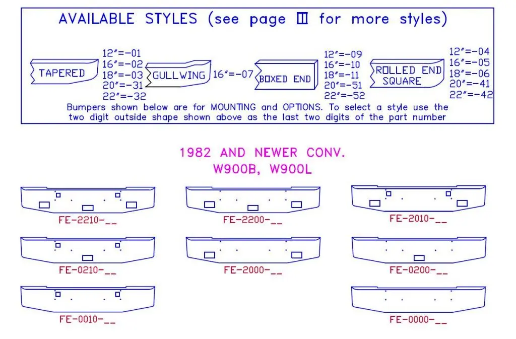 NEW: NEW BUMPER, W900B W900L 18" ROLLED END SQUARE 1982 AND NEWER 7 GA STEEL CHROME WITH BOLT HOLES TOW PIN HOLES
