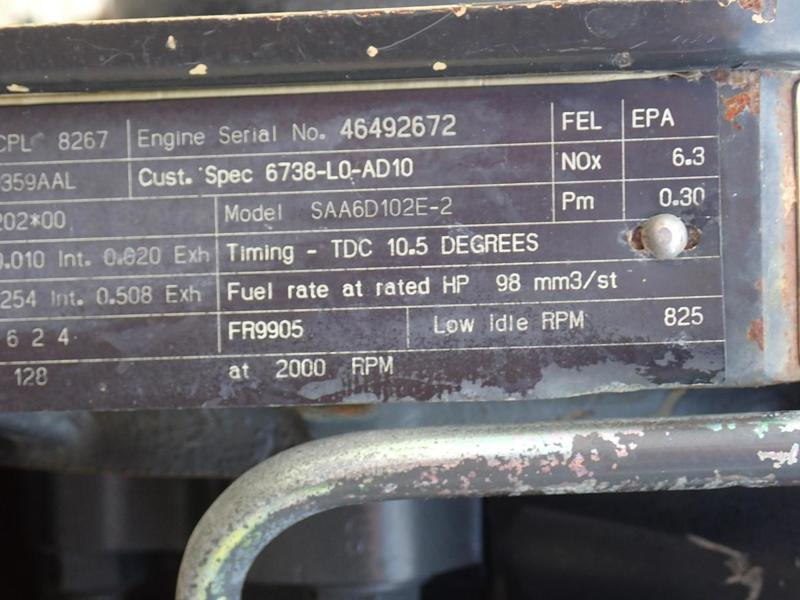 Used: Used Engine SAA6D102E-2 COMPLETE GOOD 2005 Komatsu SAA6D102E-2 diesel engine, turbocharged, mechanical fuel system, Bosch inline injection pump, CPL 8267, removed from a Komatsu WA320-5-wheel loader, 171 HP at 2000 RPM, complete as pictured. EXCELLENT RUNNING ENGINE, OFFERED EXCHANGE PLUS $500.00 REFUNDABLE CORE DEPOSIT WITH 100 DAY LIMITED PARTS WARRANTY.