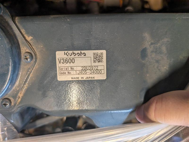 New: New Engine V3600 MECHANICAL, KUBOTA NEW SURPLUS SPECIAL PURCHASE, COMPLETE POWER UNIT WITH SIX MONTH LIMITED PARTS WARRANTY. 3.6L, Family # DKBXLO3.6XXX, SAE 4.