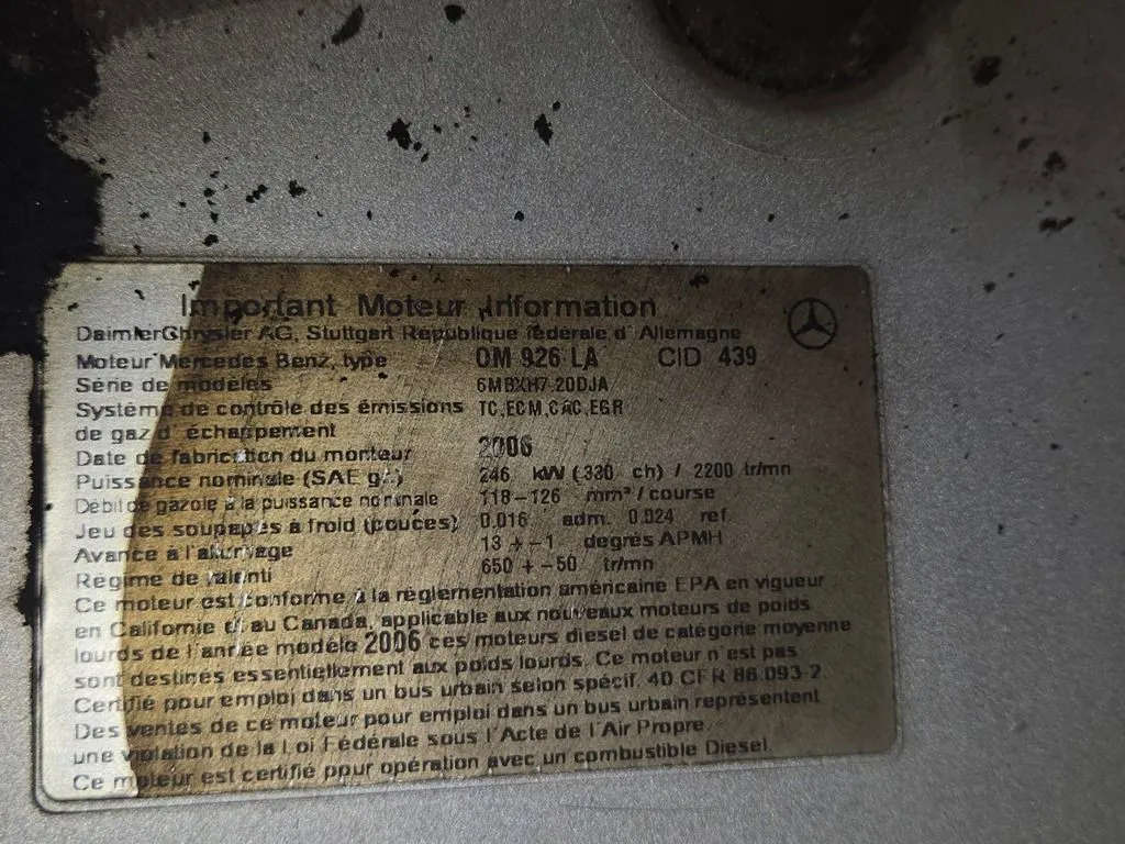 - Engine : 2006 - Mercedes-Benz OM926