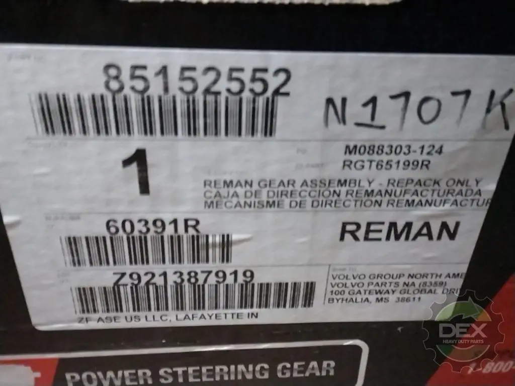 Surplus A: Surplus A TRW MACK STEERING GEAR 85152552, *NEVER INSTALLED* (TRWRGT65199R)(6990-RGT65199R) ** REPLACES 2047694 & 3098661 **, CORE GROUP: 65199G, CORE PART TAS65150