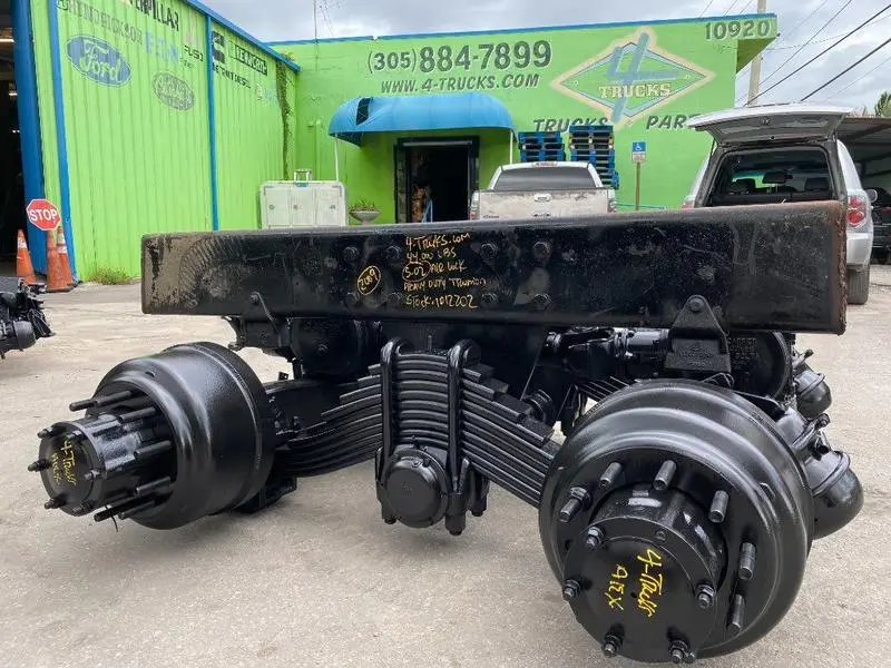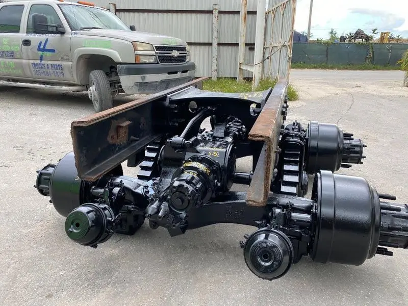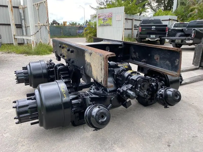 REMANUFACTURED: REMANUFACTURED REMANUFACTURED TANDEM CUTOFF MACK 44.000 LBS CAMEL BACK SUSPENSION WITH AIR LOCK DIFF, RATIO:5.02, 2009 TRUCK, HEAVY DUTY TRUNION, ABS SENSORS, PILOT METRIC HUBS, ALSO MANY TANDEMS IN STOCK.