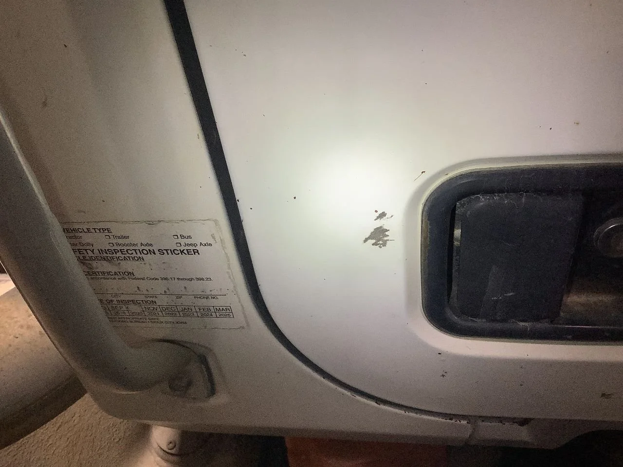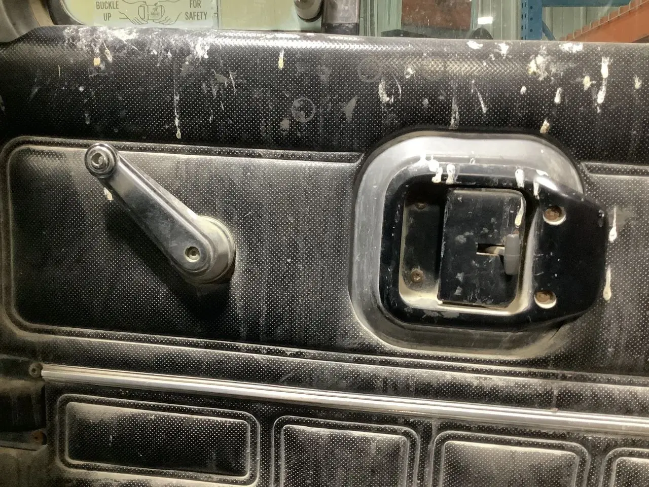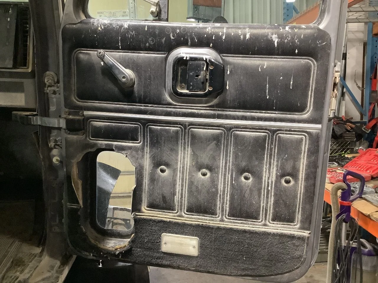 USED: USED COMPLETE, DOES NOT INCLUDE MIRROR, INTERIOR PANEL TORN AROUND CURBSIDE WINDOW, MINOR RUST UNDER DOOR ON INSIDE & RH EDGE, PAINT CHIPS NEAR DOOR HANDLE