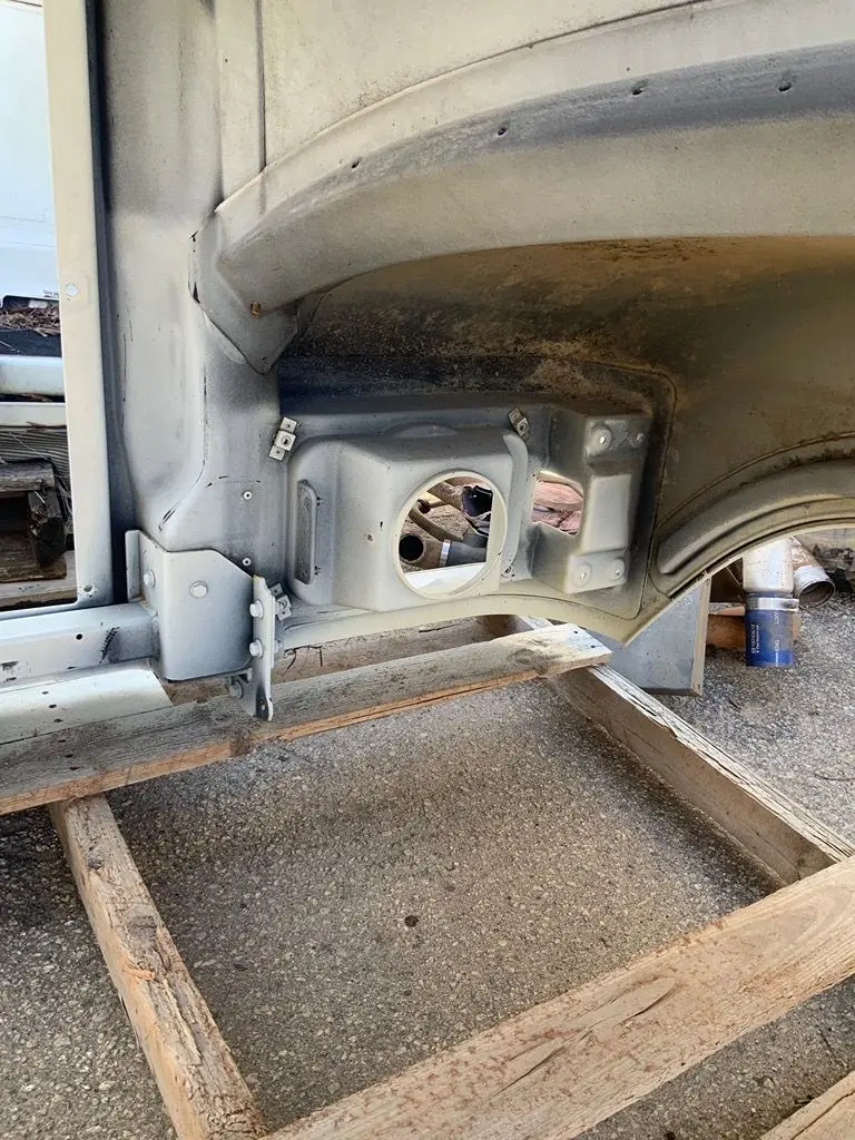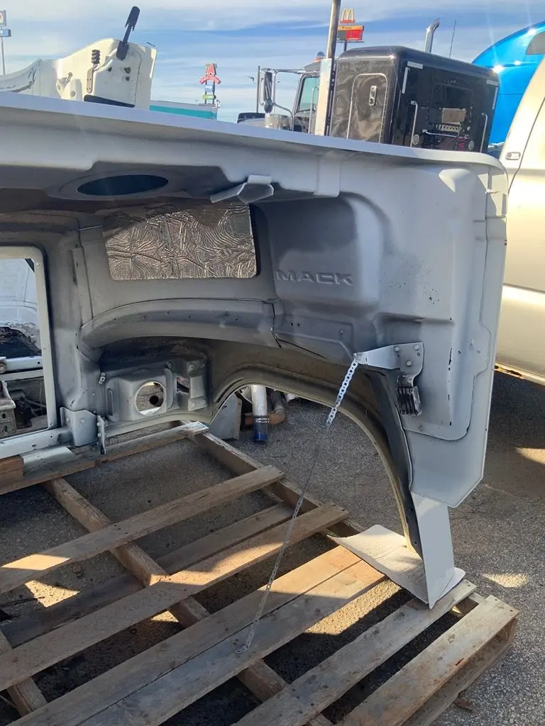 -All blemishes has been professionally repaired and ready to be painted and installed. Very nice solid OEM Mack hood