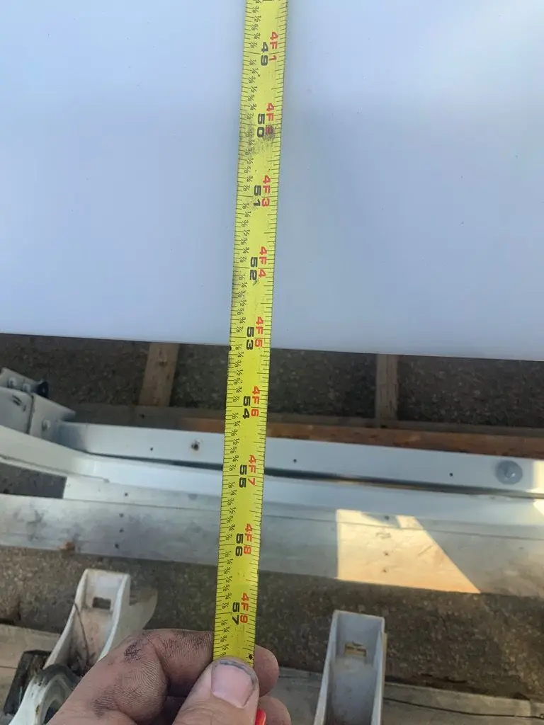 -Measures 53†down the center lline of the hood