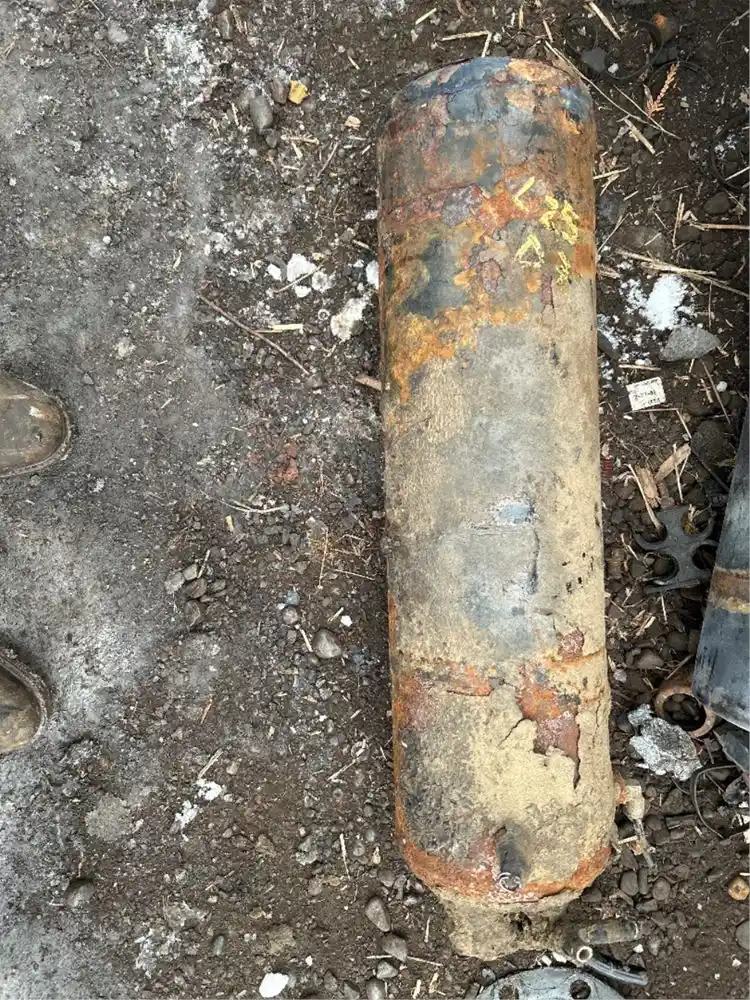 Used: Used Air tank with 6 fittings L=25 D=7 in good used condition removed from A 2007 Mack