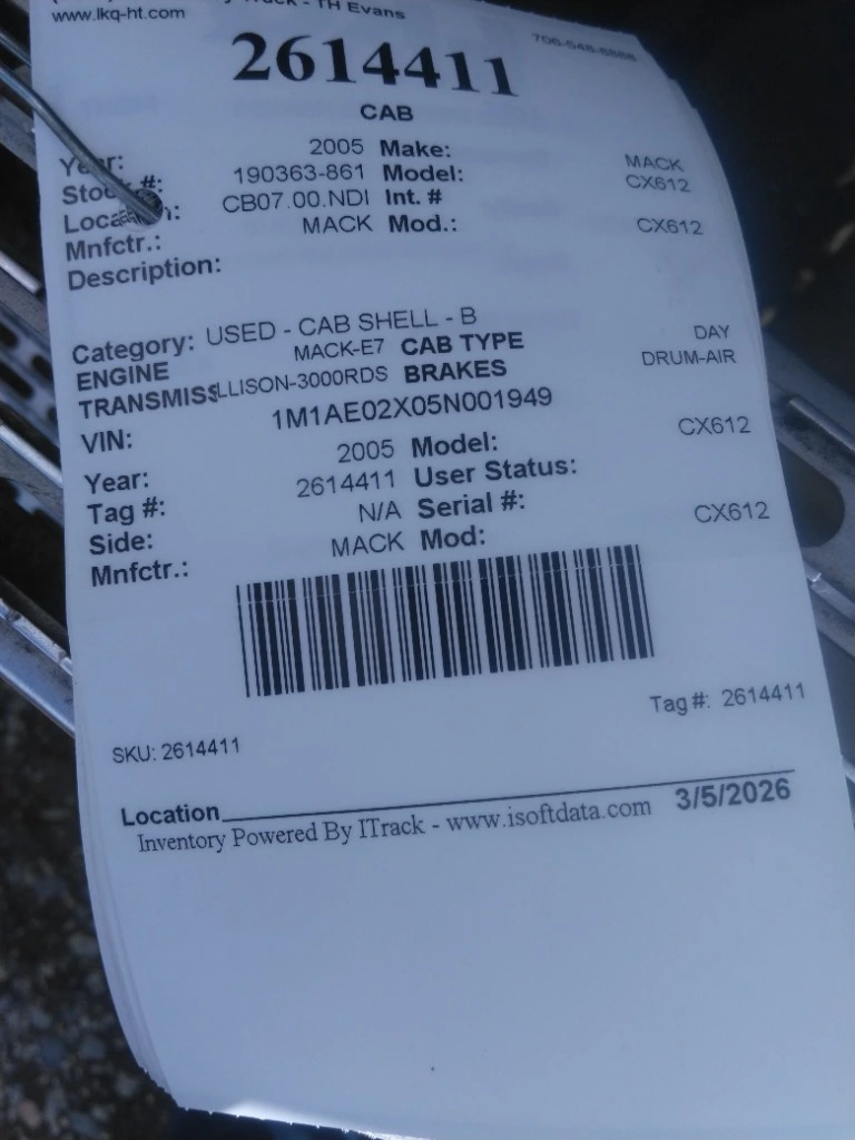 2005 MACK CX612 CAB