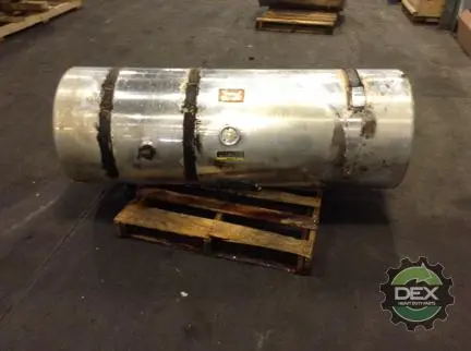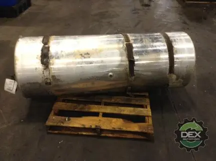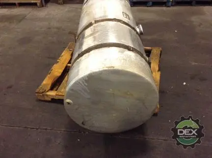 Recycled: Recycled 120 gallon aluminum fuel tank, 25" dia x 68" long with center fill neck