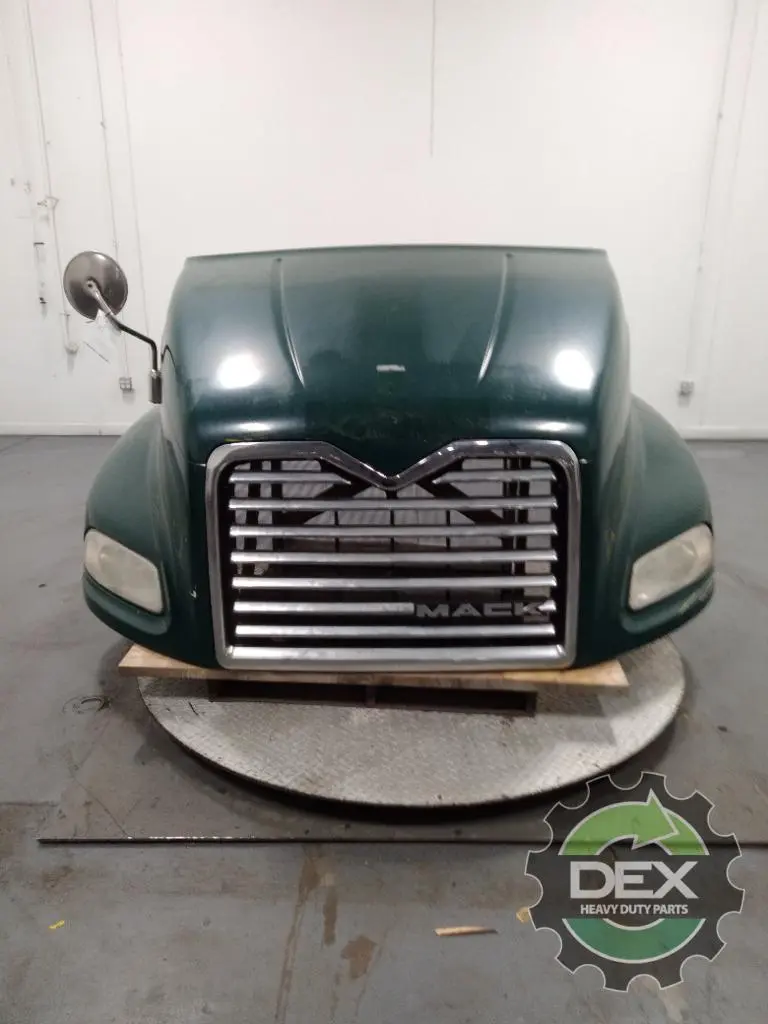 Recycled: Recycled Mack CXU axle back hood assembly, with grille, spot mirrors, headlights, latches and vents, gouge at LH headlight, Chip between RH headlight and grille, otherwise good usable hood.