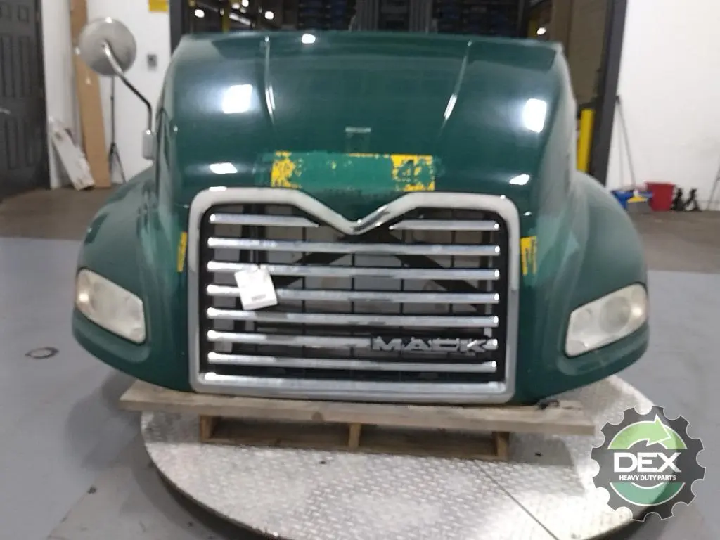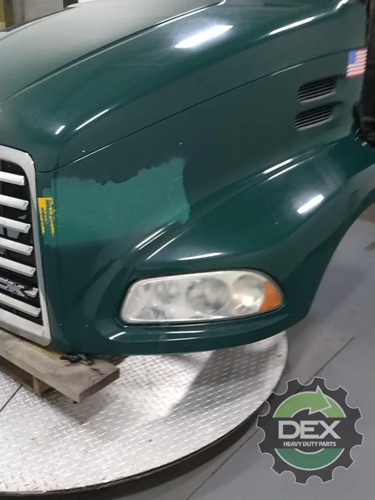 Recycled: Recycled '16 Mack CXU axle back complete groomed hood assembly, with headlights, grille, vents, spot mirror, latches, etc... crack atRH headlight