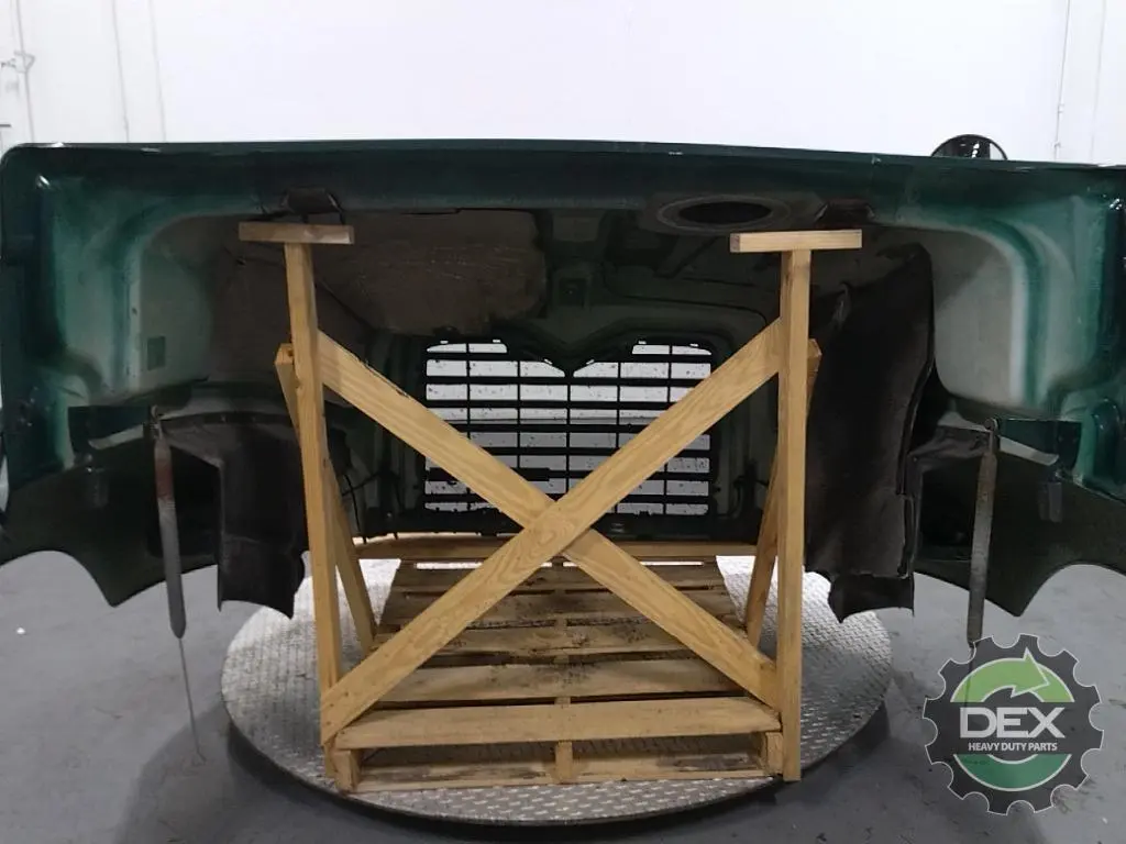 Recycled: Recycled '15 Mack CXU axle back complete groomed hood assembly, with headlights, grille(cracked), latches, spot mirror, vents etc... crack at RH headlight, drilled for RH hood mirror but holes are plugged.