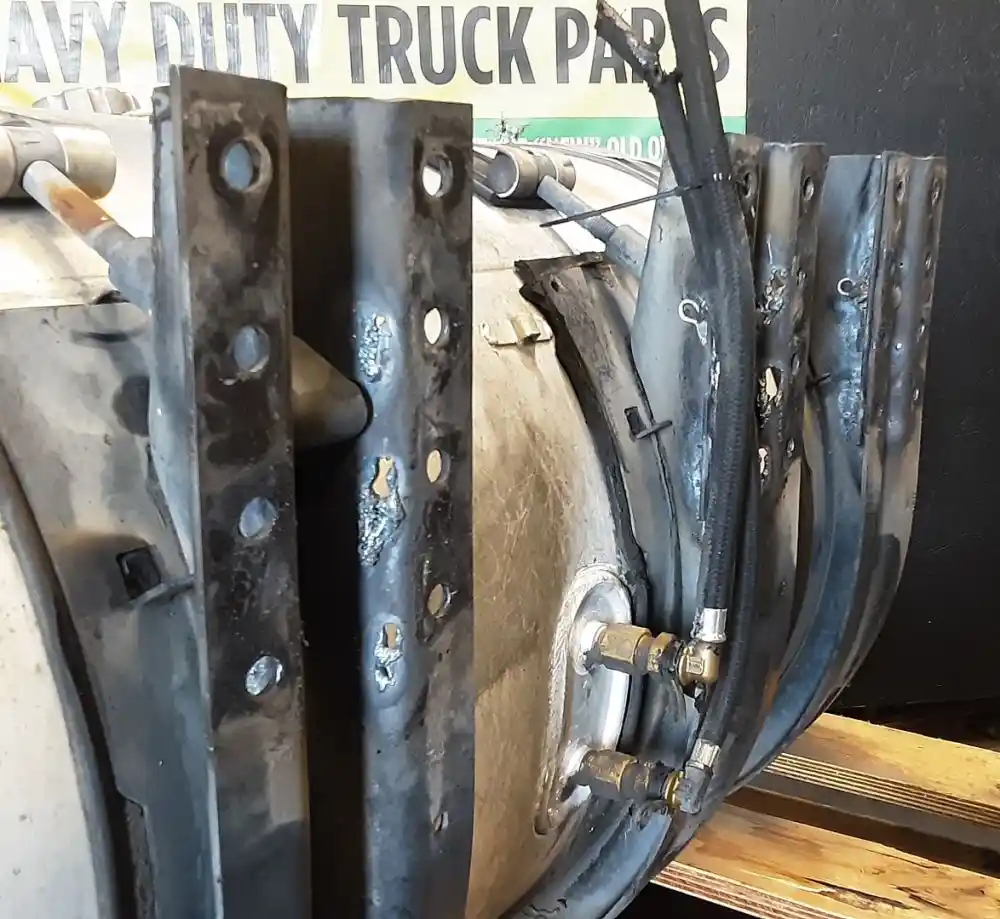 Used: Used 2013 Mack CXU612 Driver Side LH Fuel Tank, 43"L x 26" Dia, 100 Gallon Capacity, w/ Steps & Brackets. P/N 21701290. Brackets Have Torch Damage, Endcap Scraped, Small Dents On Steps.