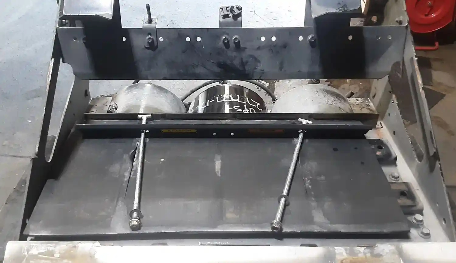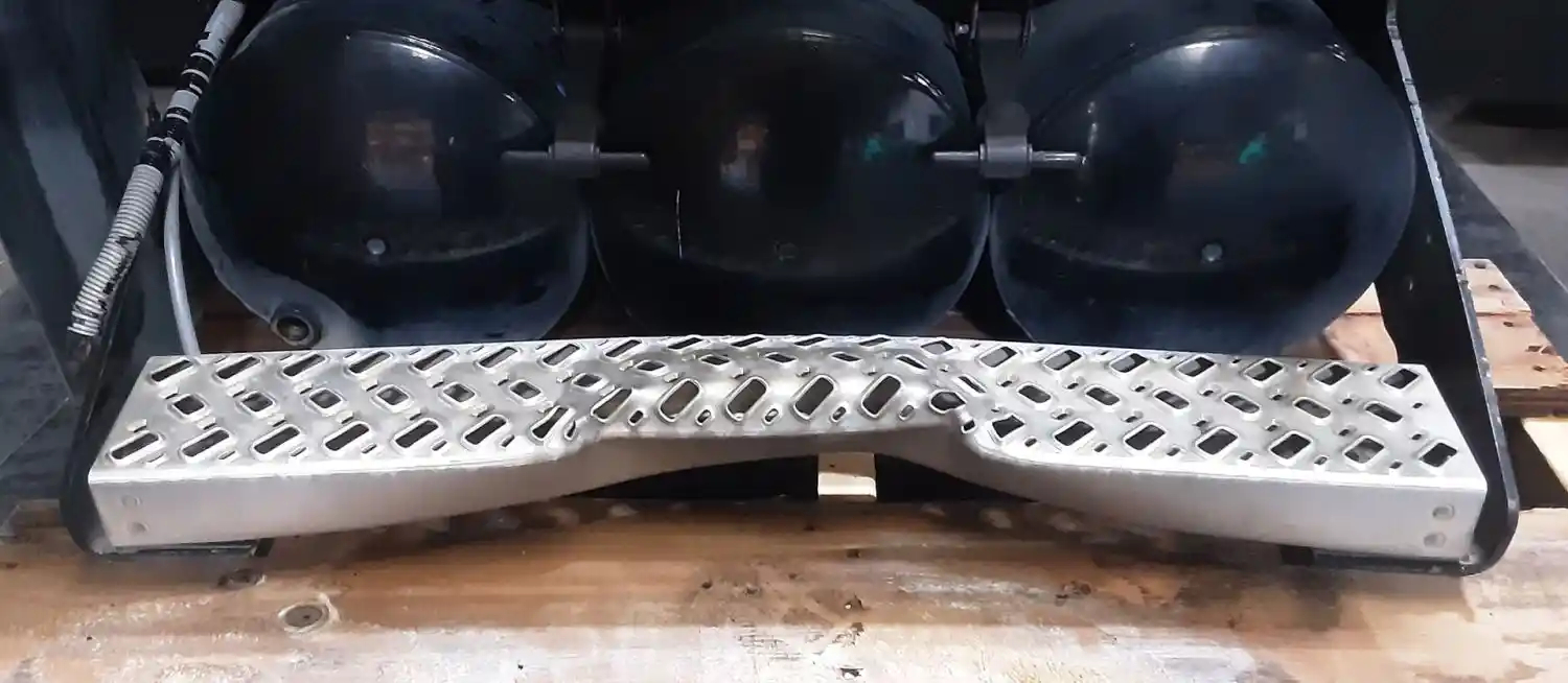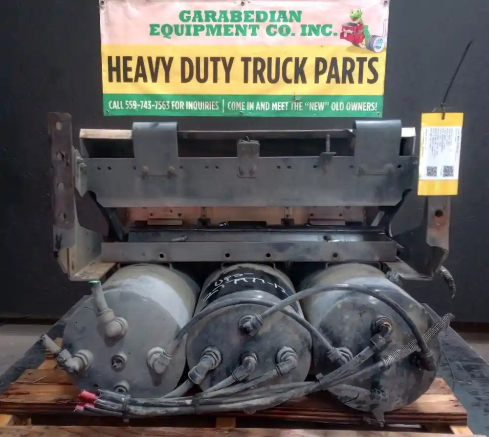 Used: Used Driver Side Battery Box 30"L x 14.5"W x 11"H, 4 Battery Capacity, Includes Lid & 3 Air Tanks. Bottom Step Is Bent.