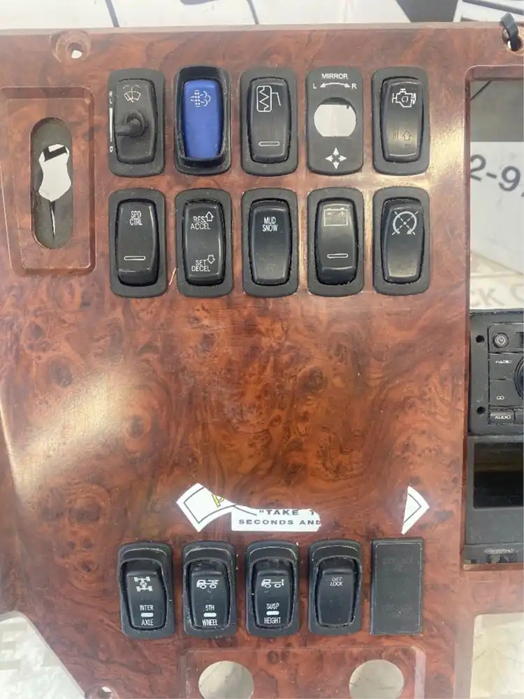 Used: Used Mack 2013 CXU613 DASH PANEL WITH RADIO AND SWITCHES THAT INCLUDE-WIPER SWITCH, MIRROR CONTROL, BATTERY, DIFF LOCK, SUSPENTION HIGHT, FIFTH WHEEL, INTER AXLE. 12 VOLT LIGHTER SOCKET, HEAT VENT. 84MT5102M 28261017 21470356 21470408 82259721