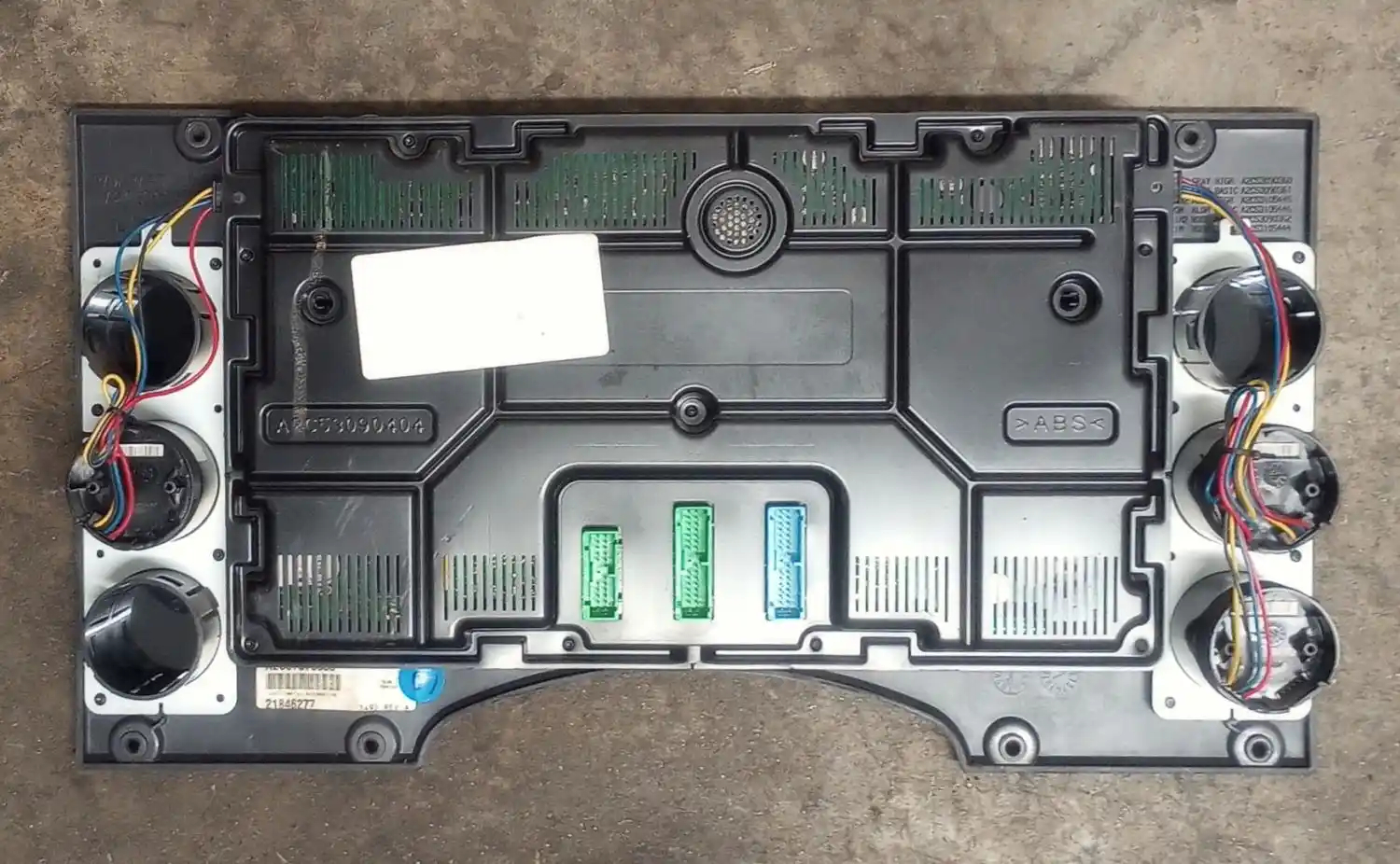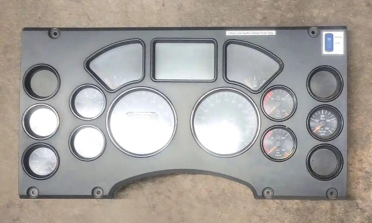 Used: Used 2013 Mack CXU613 Instrument Cluster, Gauge Cluster, P/N 21846277, A2C37575600. Digital Display and 11 Analog Gauges: Exhaust Temp, Trans Temp, Coolant Temp, Engine Oil Pressure, Fuel Level, MPH, RPM, Air Pressure (X2), Engine Oil Temp, DEF Fluid Level.