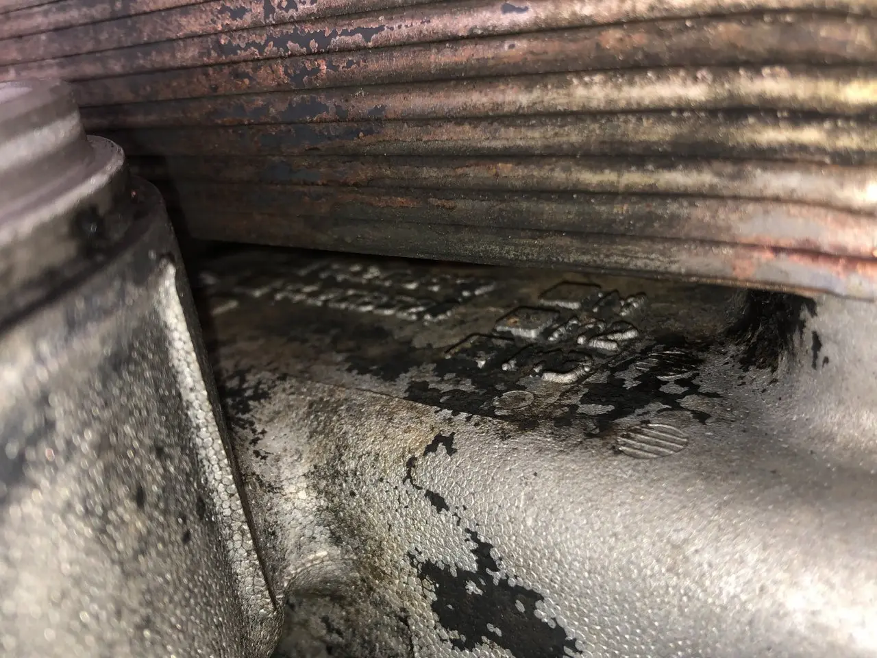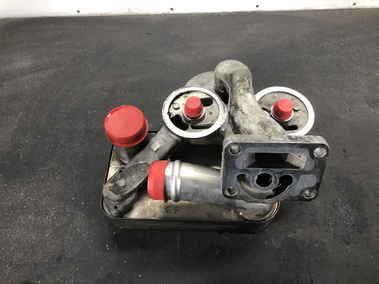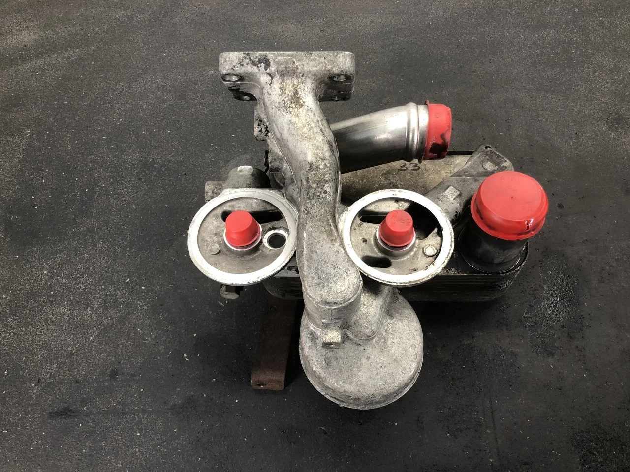 USED: USED MACK E7 OIL FILTER BASE W/OIL COOLER, CAST# 142GB519M ID: 142GB519M