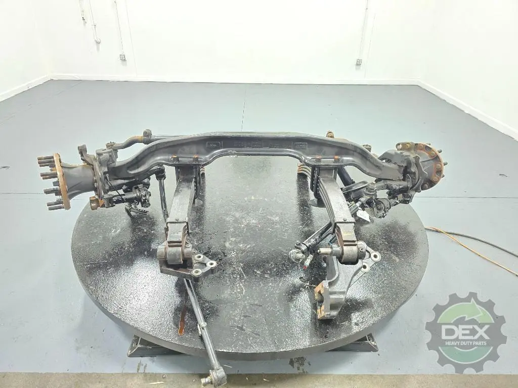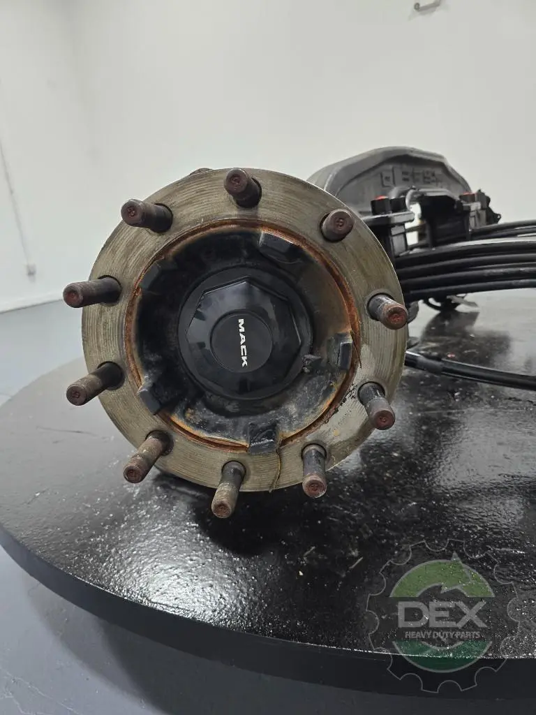 Recycled: Recycled Mack FXL20 20k steer axle assembly with taperleaf suspension, setup for hub piloted aluminum wheels, ABS drum brakes, uses axle 22594676, knuckles 21063577 and 21063580, springs 20935788, hubs 21728458, off '19 LR with less than 1k miles