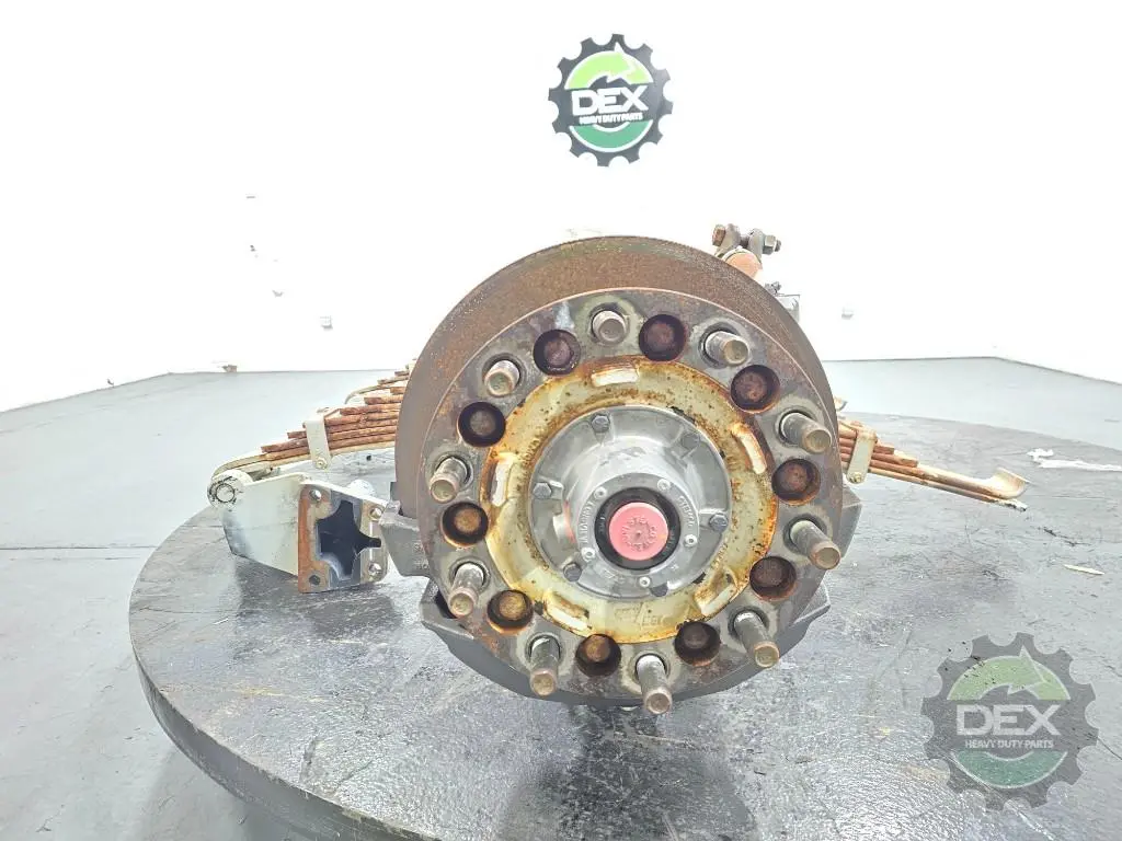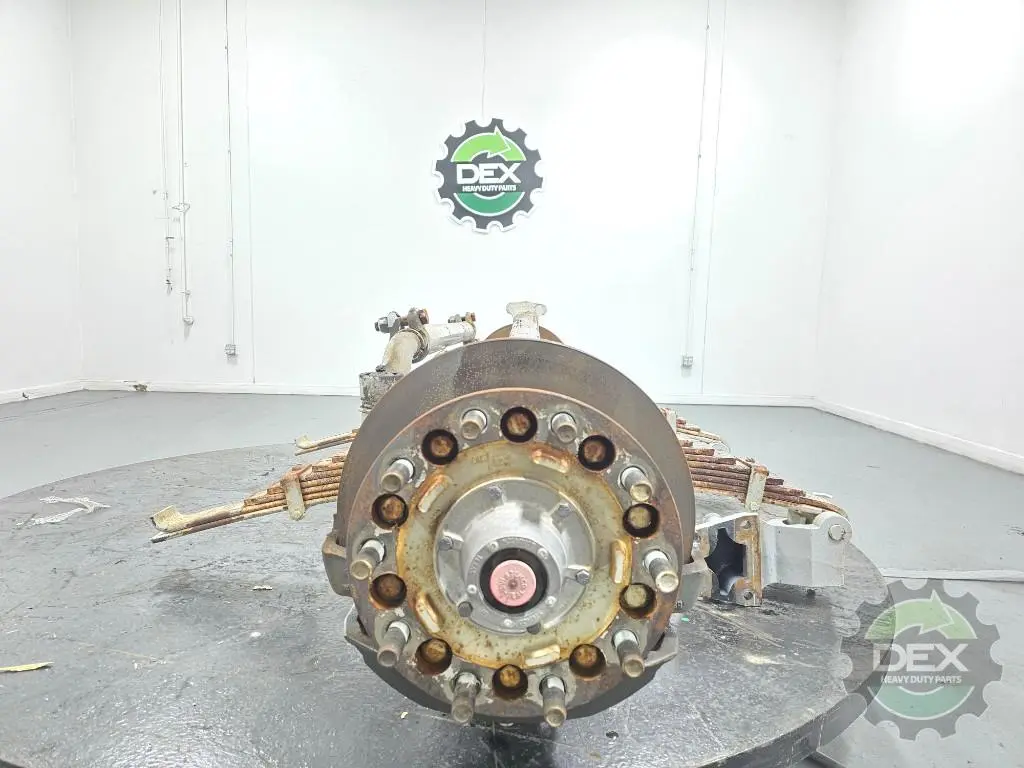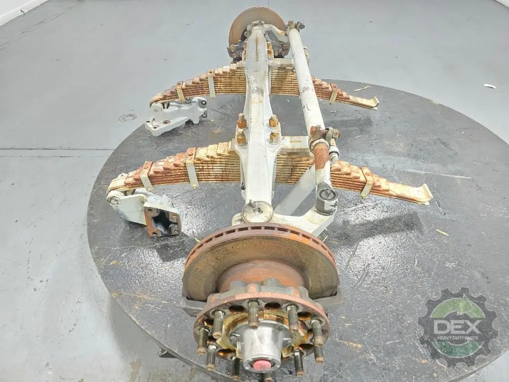 Recycled: Recycled Mack FXL20 20k steer axle assembly with multileaf suspension, setup for hub piloted steel wheels, ABS disc brakes, uses beam 22594676, springs 25115073, hubs 23480703, knuckles 23367302 and 23367303, calipers 23675141 and 23675142. off LR with 20k miles.