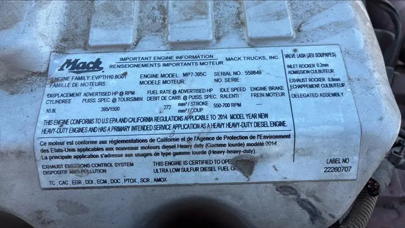 USED - TAKEOUT: USED - TAKEOUT USED MACK MP7 EPA 13 (D11) ENGINE ASSY