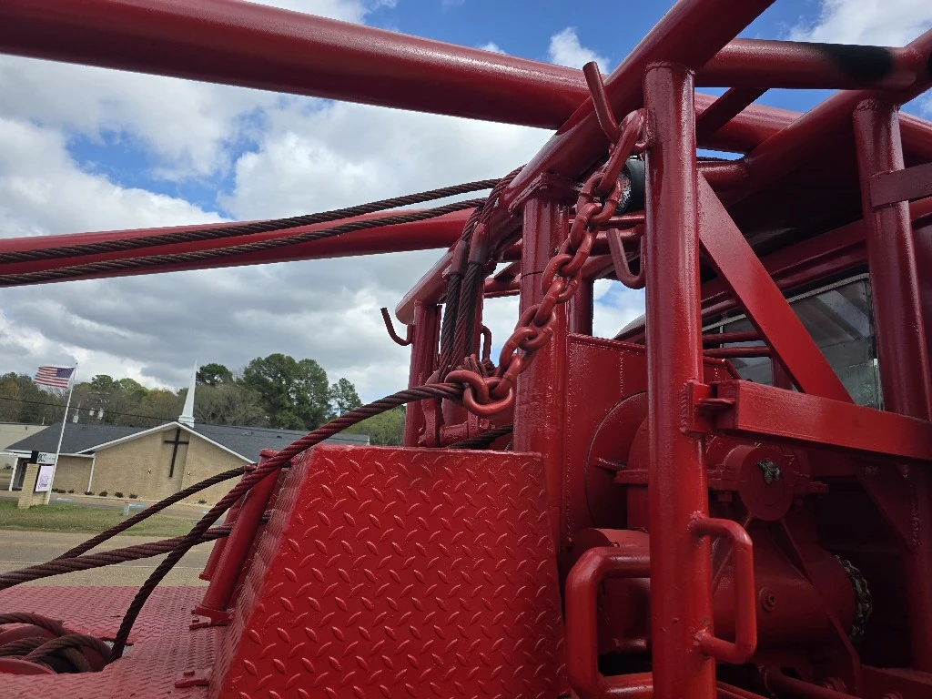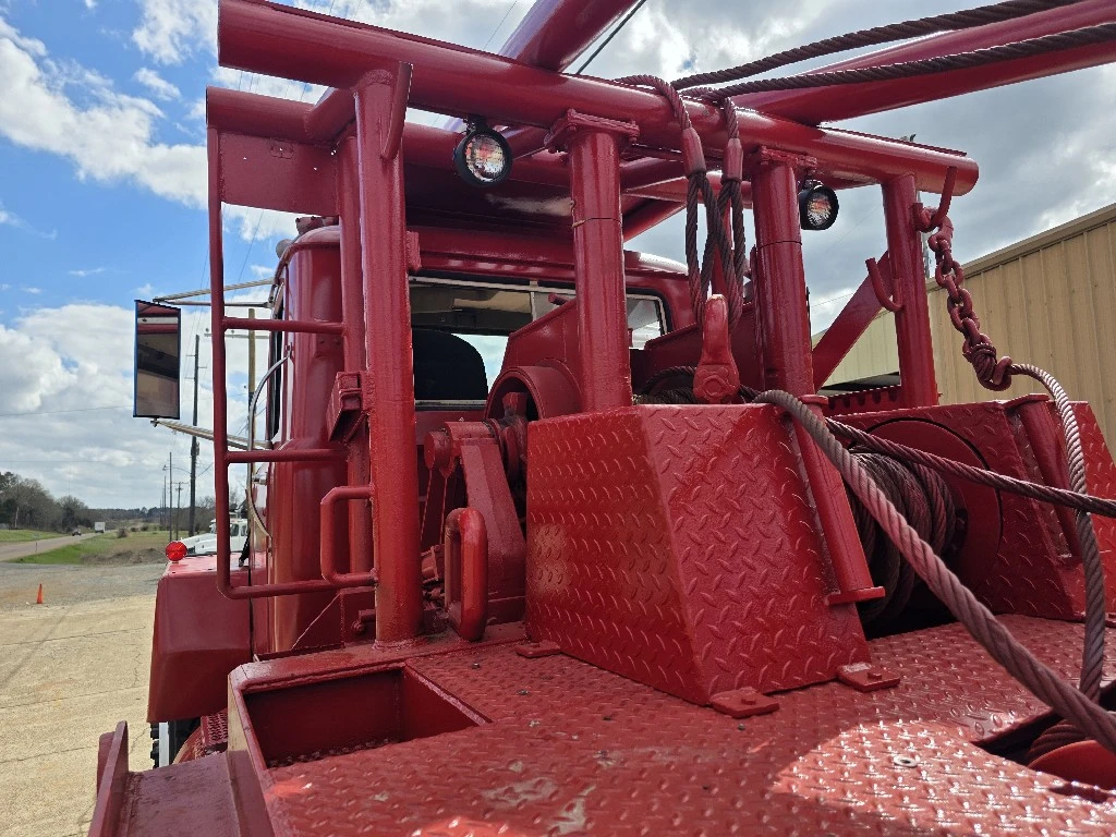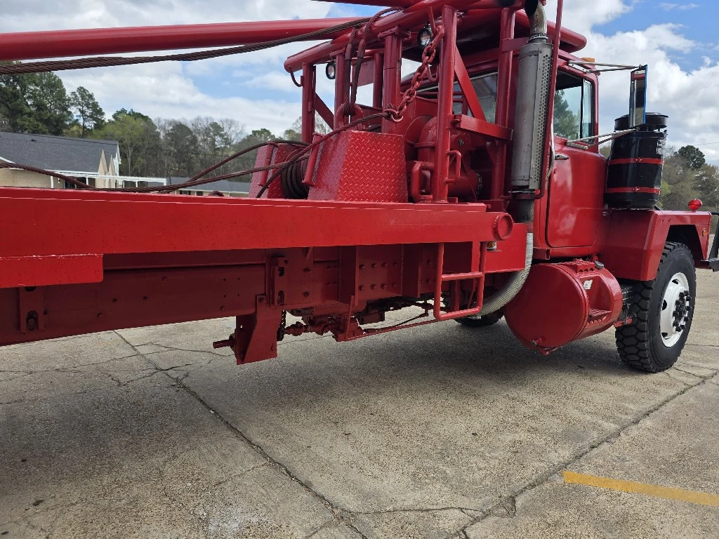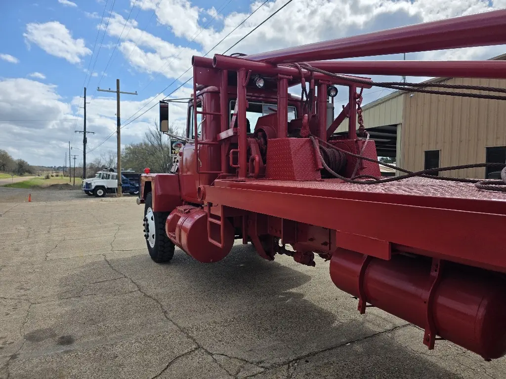 WINCH | OILFIELD TRUCKS: WINCH | OILFIELD TRUCKS 1981 MACK RD600SX WINCH TRUCK, MACK EM6 ENGINE 285HP, 5 SPEED MACK TRL1078 TRANSMISSION, DOUBLE FRAME,44,000LB CAMELBACK SUSPENSION, CRD92/93-5.02 RATIO DIFFERENTIALS, 16K STEER AXLE, REAR TIRES 11R24.5 BUDD, FRONT TIRES 1200/24 BUDD, WITH 1241 SPICER BOX, MAIN WINCH TULSA 70L WINCH, TULSA 34R WINCH, AND TULSA 23L WINCH, 300" WHEEL BASE, 20FT. OF WINCH BED BEHIND HEADACHE RACK, GIN POLES ARE 24FT LENGTH.