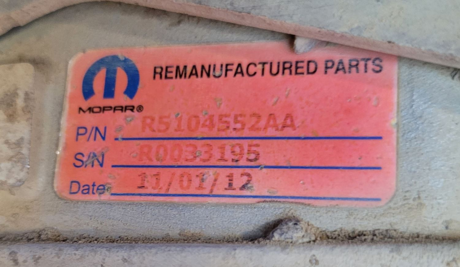 Used: Used Mercedes Benz R9012710001, S/N R0033195, P/N R5104552AA