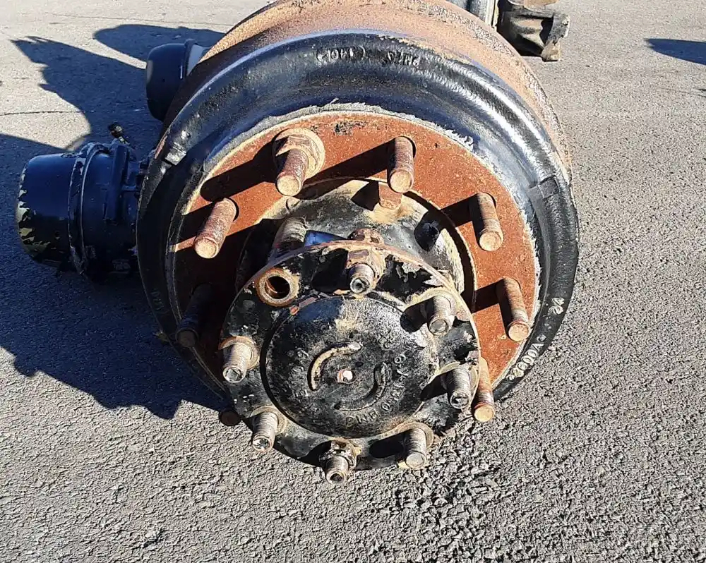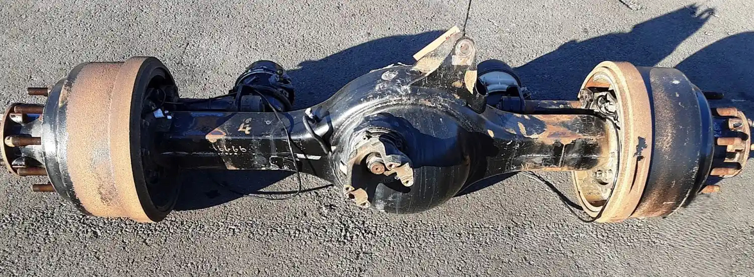 Used: Used Meritor Front Rear Axle Housing, MD20143, w/ Torque Rod Bracket, 10 Hole Pilot, Air Drum Brakes, ABS, 53.5" Inner Flange To Inner Flange, STD Track. P/N MD20143DFANN28355, C653121M1729S, S/N FOR00852155. Removed From Volvo Corporate Air Suspension,