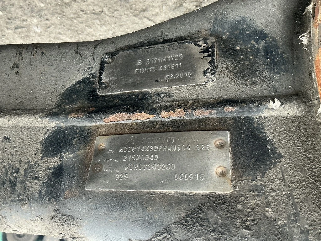Used: Used Meritor Front Rear Axle Housing, MD2014X, w/ Torque Rod Bracket, 10 Hole Pilot, Air Drum Brakes, ABS, 53.5" Inner Flange To Inner Flange, STD Track. P/N C653121M1729S. Removed From 2016 Volvo Corporate Air Suspension.