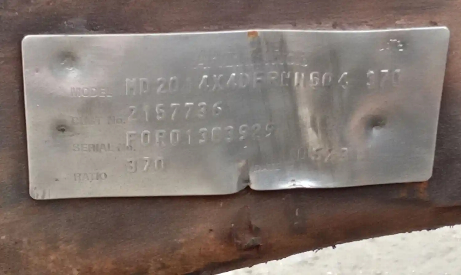 Used: Used Meritor Front Rear Axle Housing, MD2014X, w/ Torque Rod Bracket, 10 Hole Pilot, Air Drum Brakes. Missing Both Brake Drums, Needs One Brake Chamber. P/N MD2014X4DFRNN504370, C813121R2280S, S/N FOR01383929. Removed From Volvo Corporate Air Suspension.