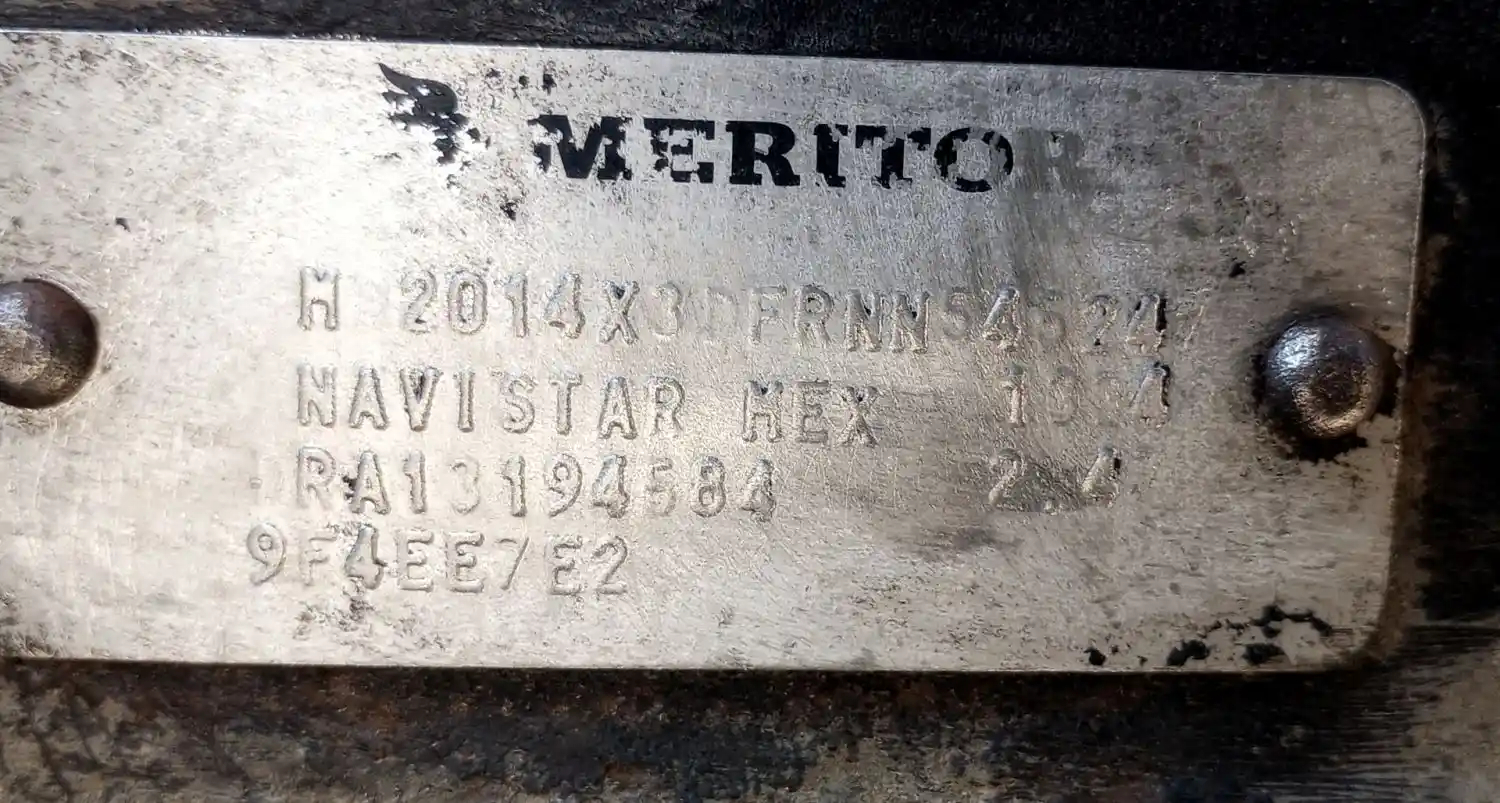 Used: Used Meritor Front Rear Axle Housing, MD2014X, w/ Torque Rod Bracket, 10 Hole Pilot, Air Drum Brakes, ABS. 53.5" Inner Flange To Flange. Missing Both Axle Shafts. P/N C703121M1729S. Removed From 2014 International Corporate Air Suspension - HOUSING ONLY, DIFF SOLD SEPARATELY.