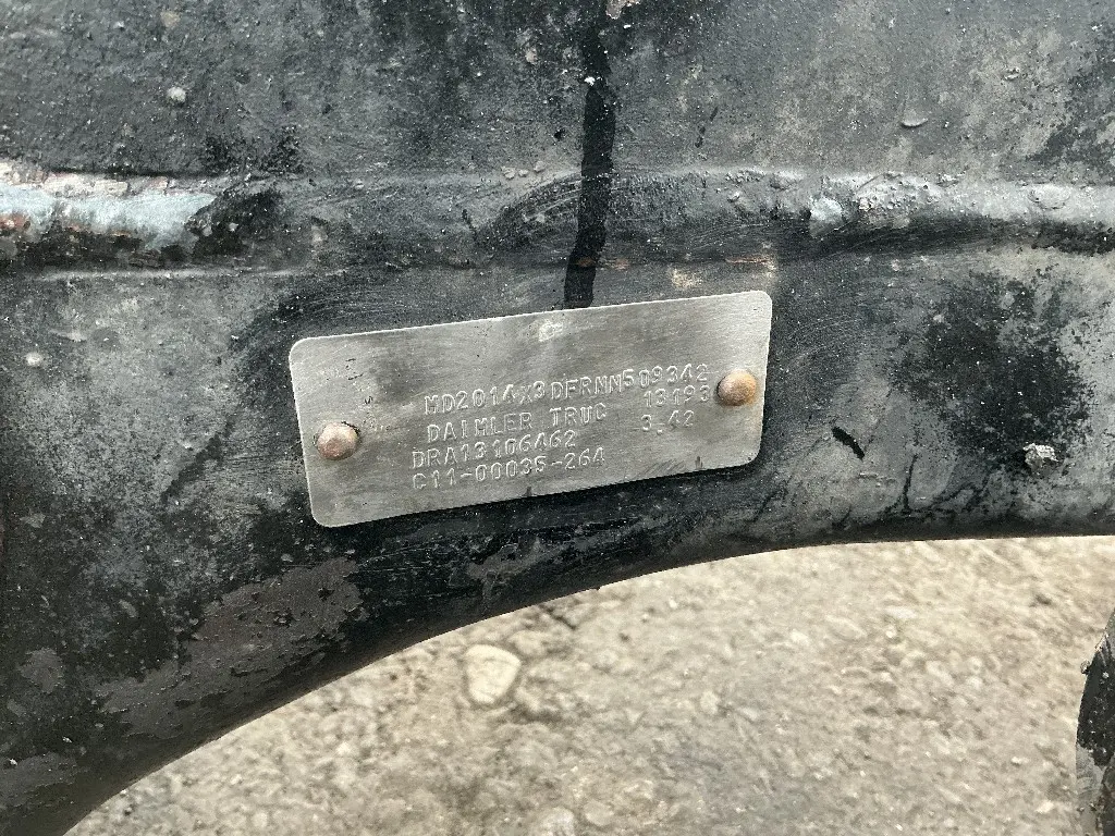 Used: Used Meritor Front Rear Axle Housing, MD2014X, w/ Torque Rod Bracket, 10 Hole Pilot, Air Drum Brakes, 56.5" Inner Flange To Inner Flange, Wide Track. P/N MD2014X3DFRNN509342, C53121Z3354S, S/N DRA13106462. Removed From 2014 Airliner Suspension. HOUSING ONLY, D