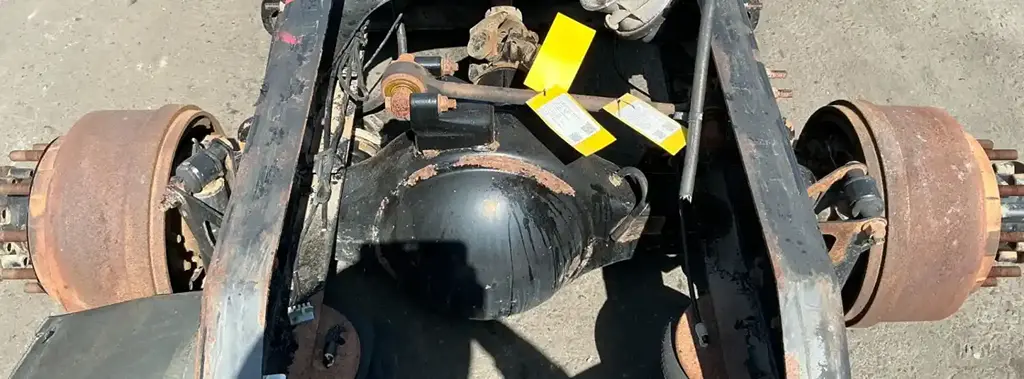 Used: Used Meritor Rear Axle Housing, MR20143M, w/ Torque Rod Bracket, 10 Hole Pilot, Air Drum Brakes, ABS, 53.5" Inner Flange To Inner Flange, STD Track. P/N E63121L1728. Removed From 2009 Volvo Corporate Air Suspension. HOUSING ONLY, DIFF SOLD SEPARATELY.