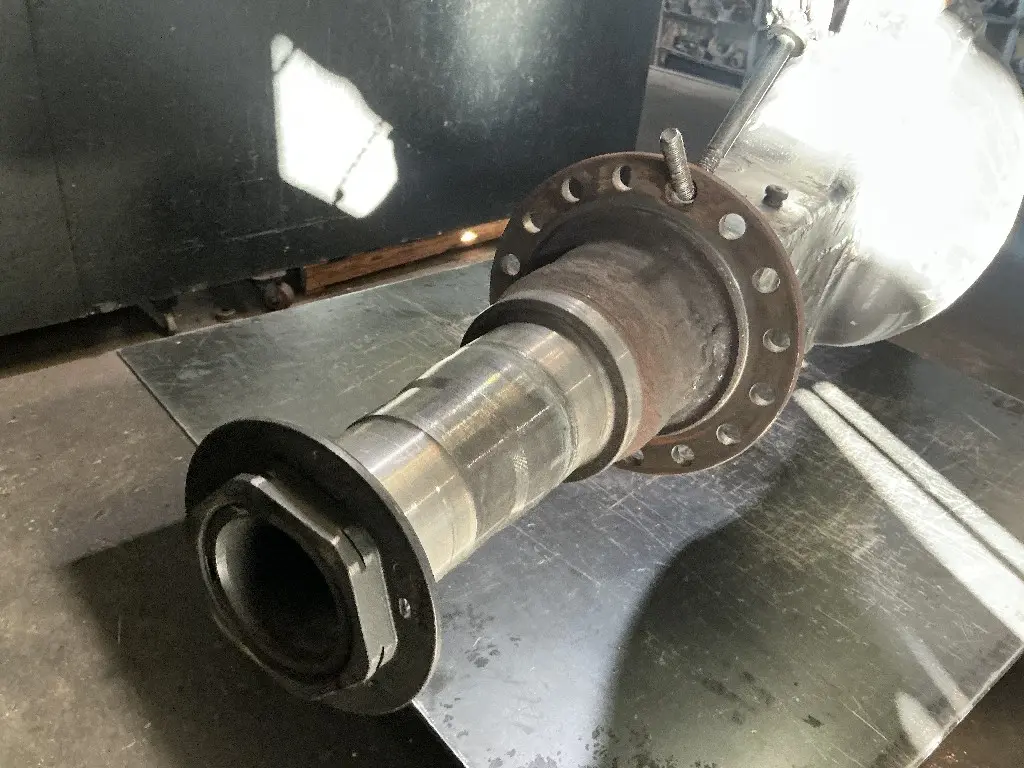 USED: USED Meritor Rear Axle Housing, MR2014X, w/ Torque Rod Bracket, 16 Hole Flange, 53.5" Inner Flange To Inner Flange, STD Track. P/N E13121L1728. Removed from 2021 International Corporate Air/IROS Suspension