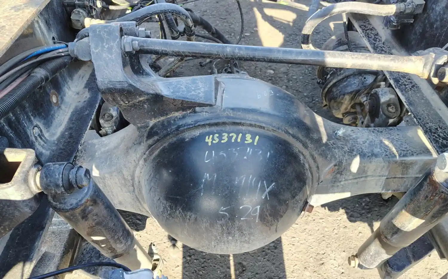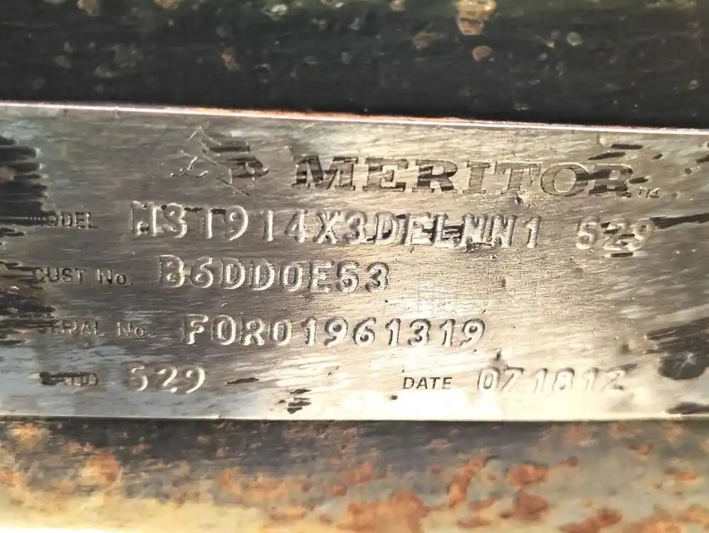 Used: Used Meritor Rear Axle Housing, MS1914X, w/ Torque Rod Bracket, 10 Hole Pilot, Air Drum Brakes, ABS, P/N MS1914X3DFLNN1529, C153121M1937, C163121M1937, S/N F0R01961319, Removed From International Corporate Air Suspension. HOUSING ONLY, DIFF SOLD SEPARATELY