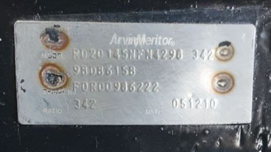 REFURBISHED: REFURBISHED Refurbished Meritor Front Rear Axle Housing, RD20145, w/ Torque Rod Bracket, 53.5" Inner Flange to Flange, STD Track, 16 Hole Flange, Removed From International Corporate Air Suspension, P/N RD20145NFN4298-342, C21 3121M1729S, S/N F0R00986222.