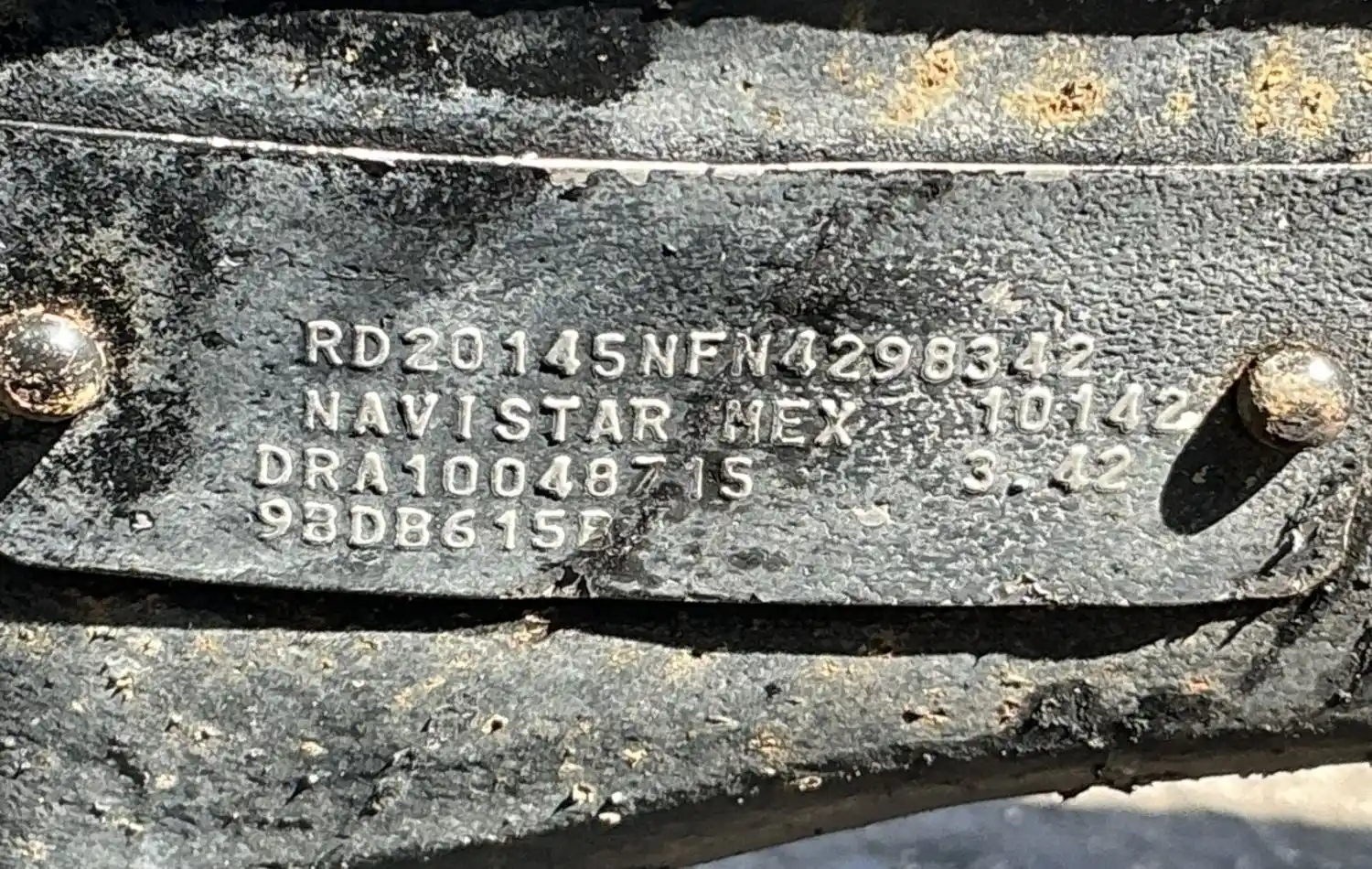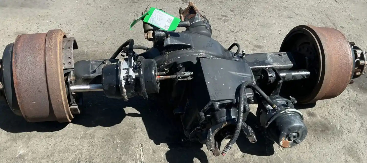 Used: Used Meritor Front Rear Axle Housing, RD20145, w/ Torque Rod Bracket, 10 Hole Pilot, Air Drum Brakes, 53.5" Inner Flange To Inner Flange, STD Track. P/N C213121M1729S. Missing Slack Adjuster & S-Cam Bracket. Removed From 201