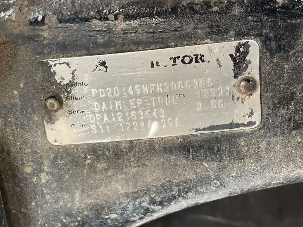 USED: USED Meritor Front Rear Axle Housing, RD20145, w/ Torque Rod Bracket, 10 Hole Pilot, Air Drum Brakes, 53.5" Inner Flange to Flange. P/N RD20145NFN2088358, C223121R2280S. Removed From 2013 Freightliner Airliner Suspension. HOUSING ONLY, DIFF SOLD SEPARATELY