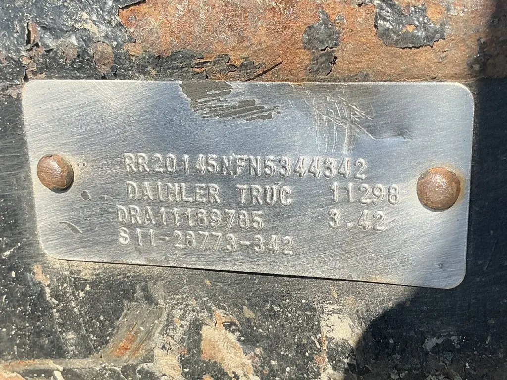 USED: USED Meritor Rear Axle Housing, RR20145, w/ Torque Rod Bracket, 10 Hole Pilot, Air Drum Brakes, ABS, (Missing Brake Drums/Pads & Brake Chambers), 16 Hole Flange, 56.5" Inner Flange To Inner Flange, Wide Track. P/N C53121Y3353. Removed From Freightliner FAS II Airlilner Suspension.
