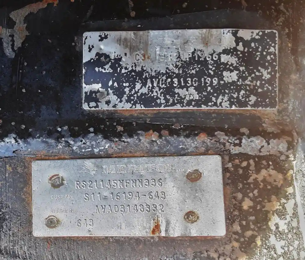 Used: Used Meritor Rear Axle Housing, RS21145, 10 Hole Pilot, Air Drum Brakes, ABS, 53.5" Inner Flange to Flange, 16 Hole Flange, Removed From 2004 Freightliner Spring Suspension, P/N RS21145NFNN336-643, C34 3121P1966