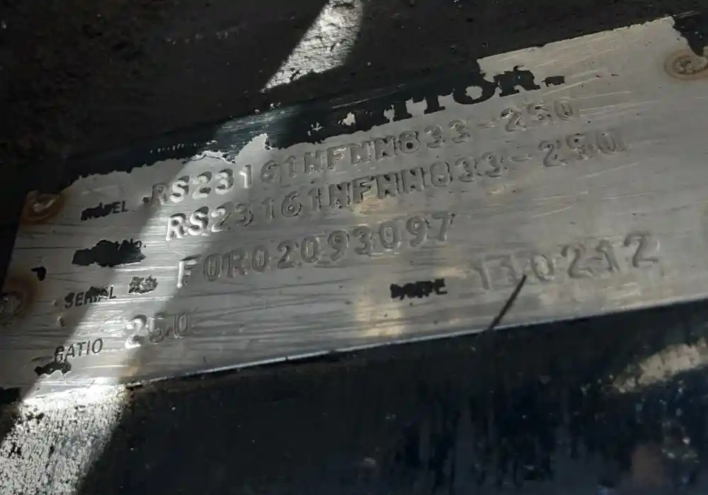 Used: Used Meritor Rear Axle Housing, RS23161, w/ Torque Rod Bracket, 10 Hole Pilot, Air Drum Brakes, ABS, 53.5" Inner Flange To Flange, STD Track. P/N RS23161NFNN833250, E743121K1857, S/N FOR02093097. Removed from 2013 Mack Corporate Air Suspension, HOUSING ONLY, D