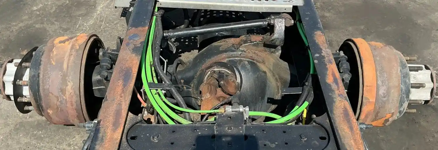 Used: Used Meritor Front Rear Axle Housing, MD2014X, w/ Torque Rod Bracket, 10 Hole Pilot, Air Drum Brakes, ABS, 53.5" Inner Flange To Inner Flange, STD Track. P/N MD2014X3DFRNN708264, C703121M1729S, S/N DRA2009049. Removed From 2020 International Corporate Air Susp