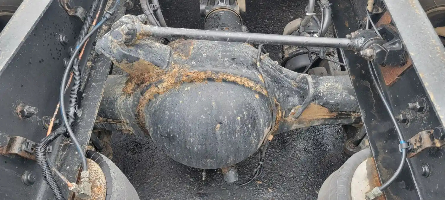 Used: Used Meritor Rear Axle Housing, MR2014X, w/ Torque Rod Bracket, 10 Hole Pilot, Air Drum Brakes, ABS, 56.5" Inner Flange To Inner Flange, Wide Track. P/N MR2014X3MFRNN507325, C53121Y3353, Removed from 2015 Airliner Suspension. HOUSING ONLY, DIFF SOLD SEPARATELY