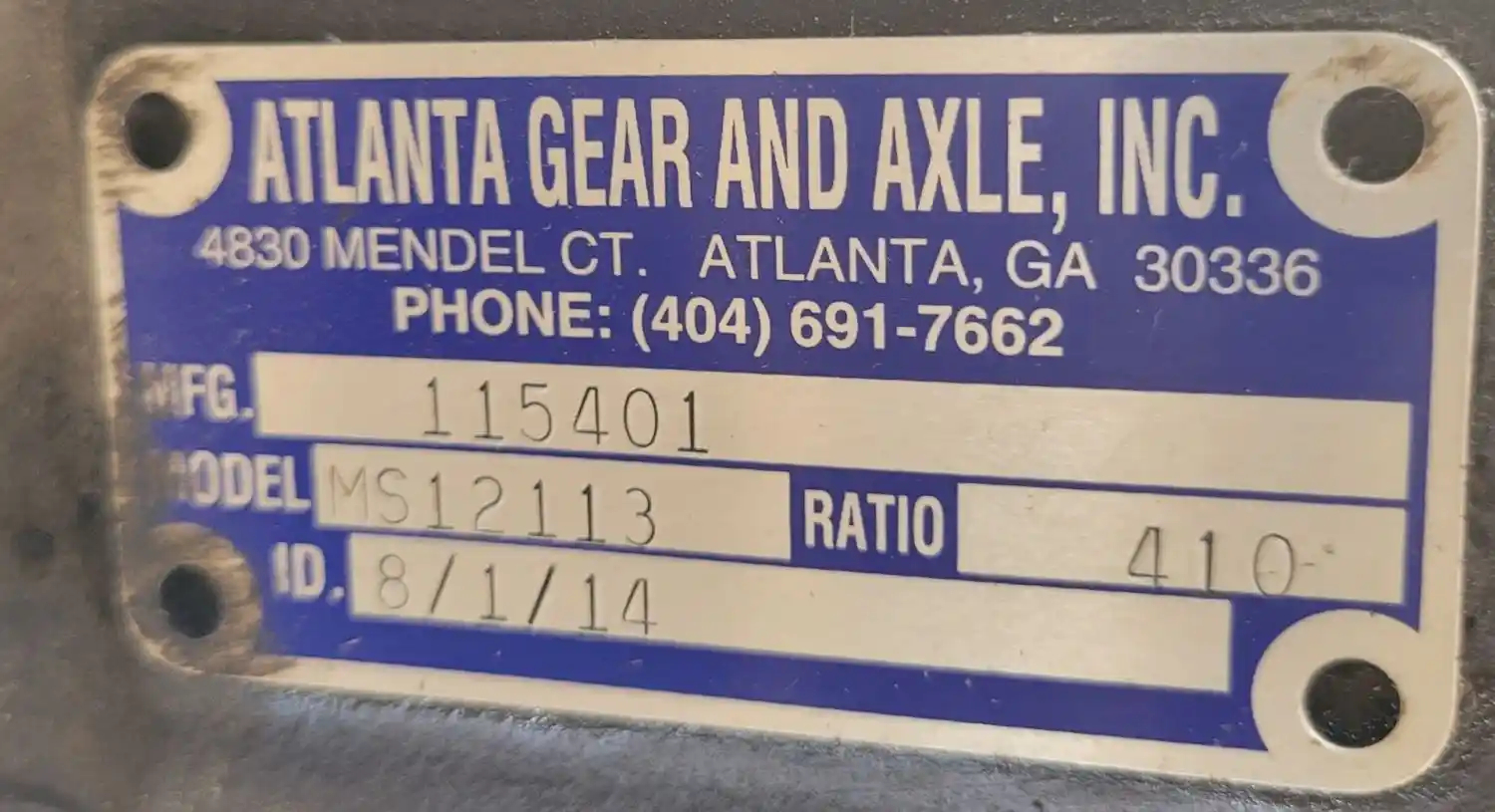 Used: Used MS12113, 4.10, Atlanta Gear Mfg# 115401, Reman'd 2014. PRICE IS FOR DIFFERENTIAL ONLY